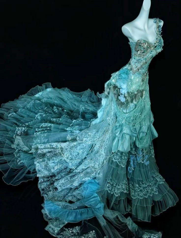 Niulatu Mermaid One Shoulder Tulle Lace Beads Long Prom Dresses Formal Dress HZ1110