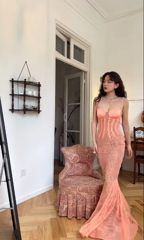 Niulatu Mermaid Spaghetti Strap Orange Lace Long Prom Dress HZ0113