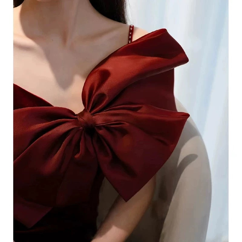 Niulatu Mermaid Spaghetti Straps Burgundy Long Prom Dress Evening Dresses HZ1110