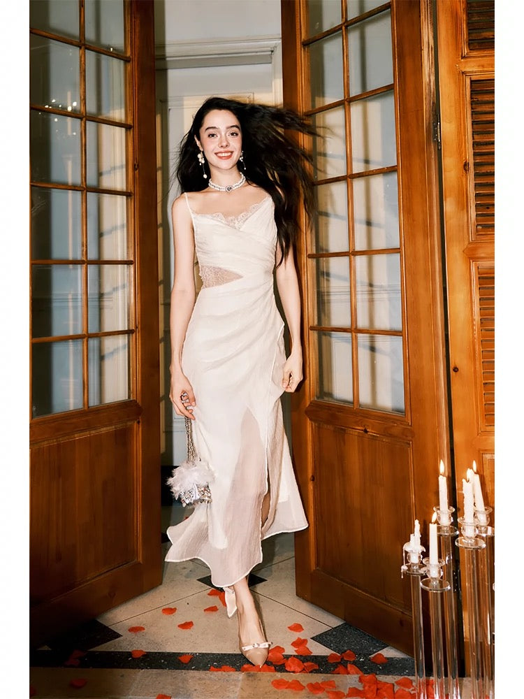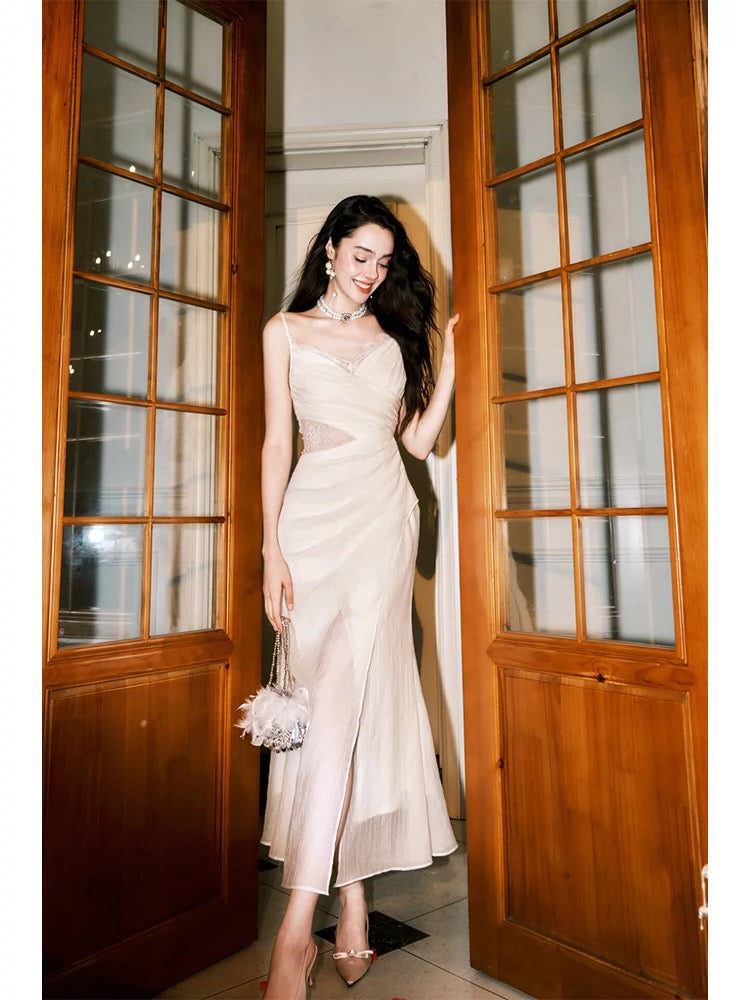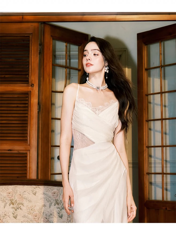 Niulatu Mermaid Spaghetti Straps Ivory Lace Slit Prom Dresses HZ1110