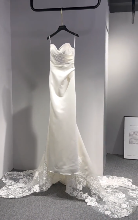 Niulatu Mermaid Spaghetti Straps Satin With Lace Train Long Wedding Dresses HZ1110
