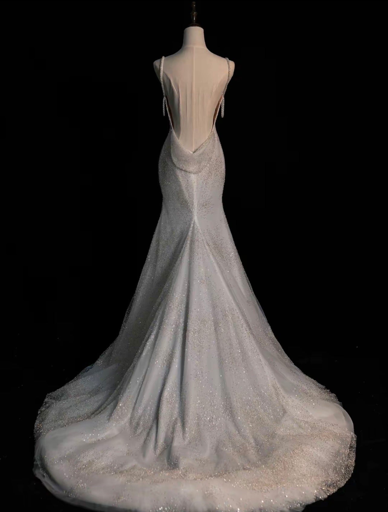 Niulatu Mermaid Spaghetti Straps Sequin Long Silver Prom Dresses Evening Dress HZ1110