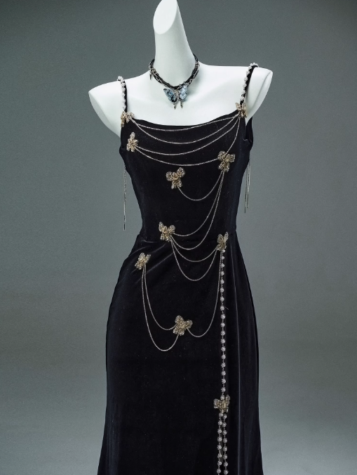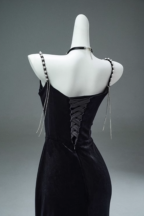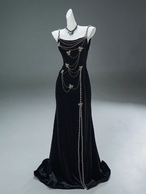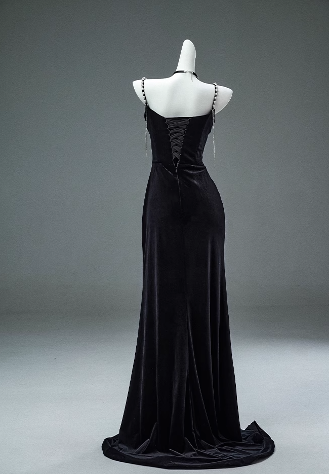 Niulatu Mermaid Spaghetti Straps Velvet Beaded Long Prom Dresses , Elegant Evening Dress HZ1103