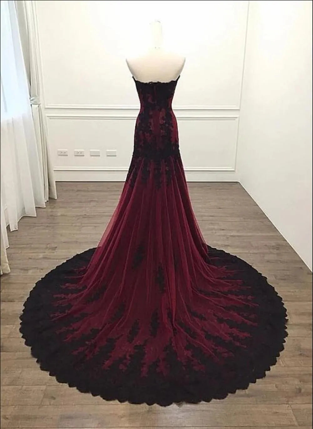 Niulatu Mermaid Strapless Burgundy Lace Evening Dress Prom Dress HZ1110