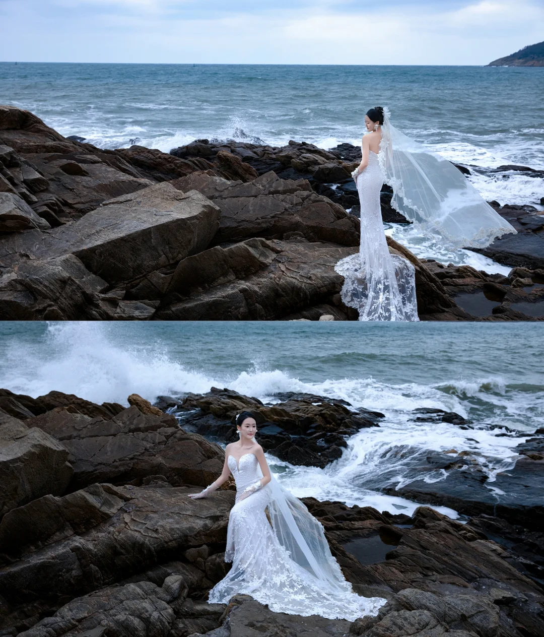 Niulatu Mermaid Sweetheart White Tulle Lace With Veil Long Wedding Dresses HZ1110