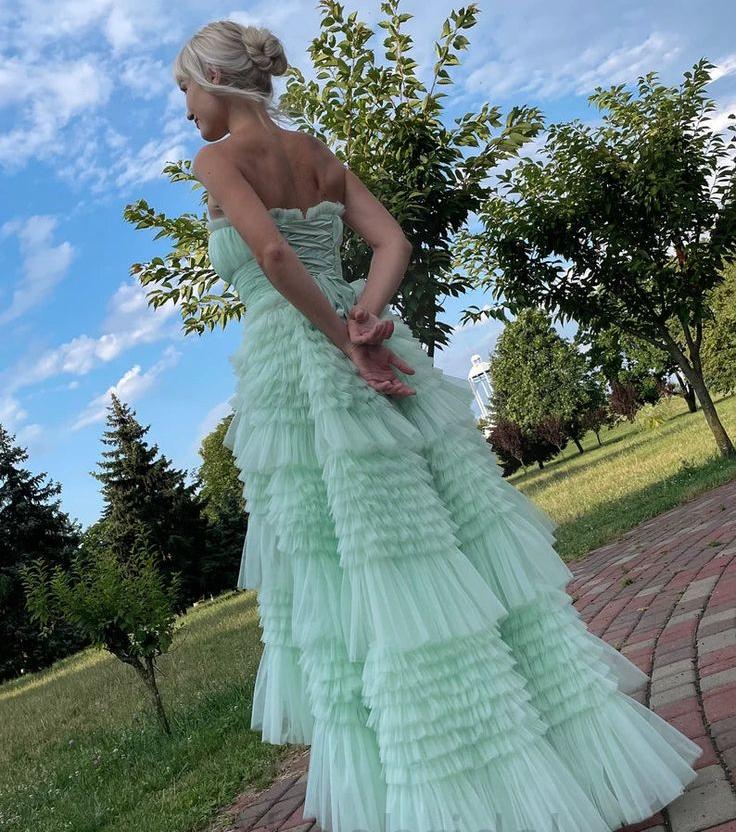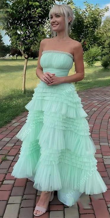Niulatu Mint Green Strapless Tulle Layered Party Dresses A-Line Prom Dresses HZ1103