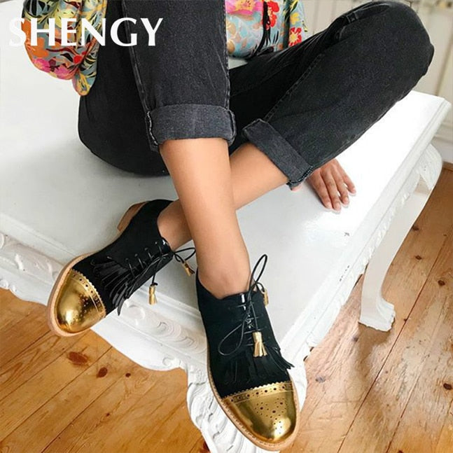 Niulatu New British Oxford Shoes Woman Lace-up Carving Pointed Toe Slip on Creepers Leather Shoes Women Flats Office Party Shoes DJSE