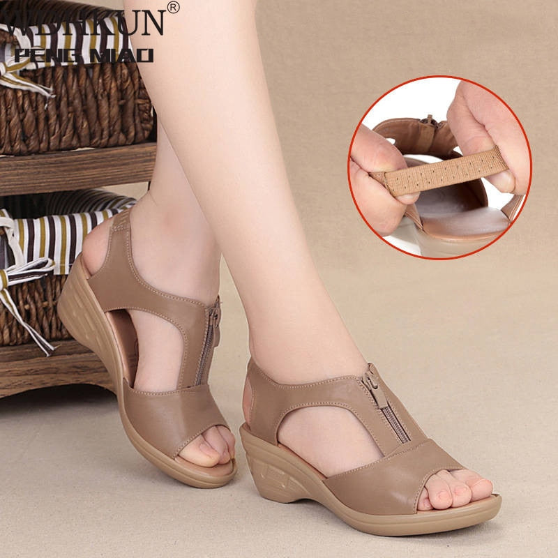Niulatu New Women Sandals High Heel Wedges Leather Shoes Woman Solid Casual Zip Platform Sandals Plus Size 35-41 Ladies Shoes DJSE