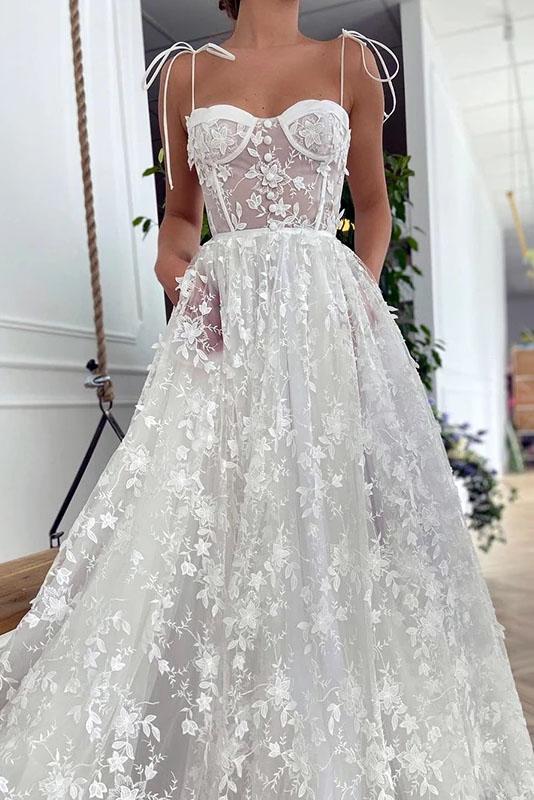 Niulatu Off White Sweetheart Lace Prom Dress A-Line Spagetti Straps Long Evening Dress HZ0113