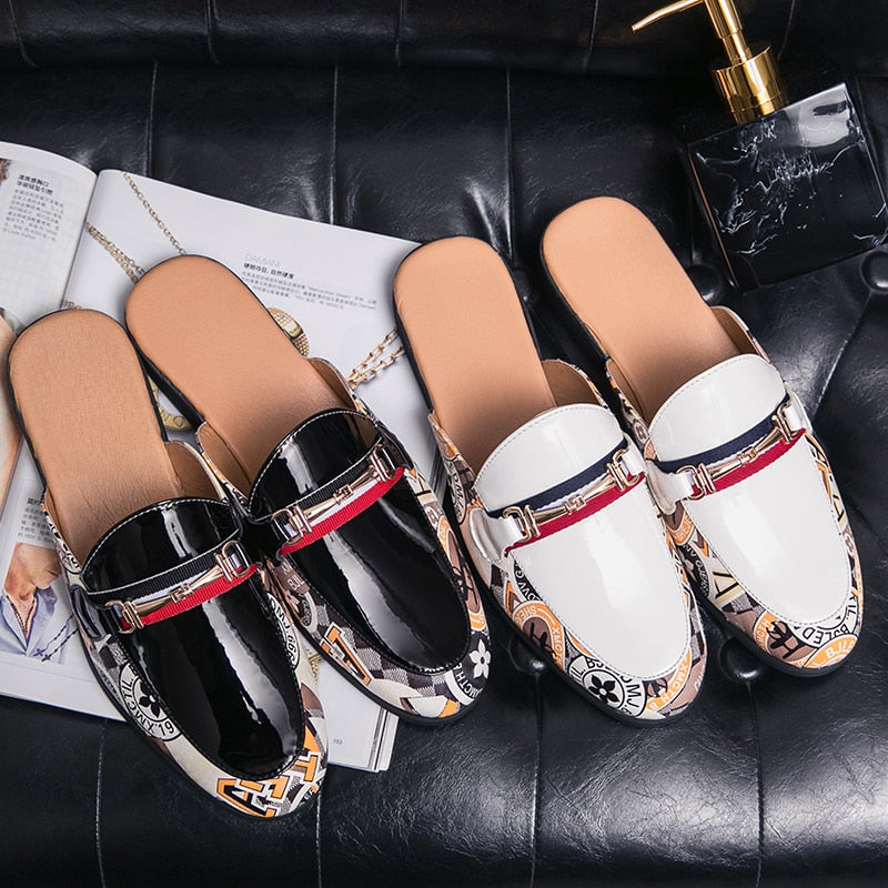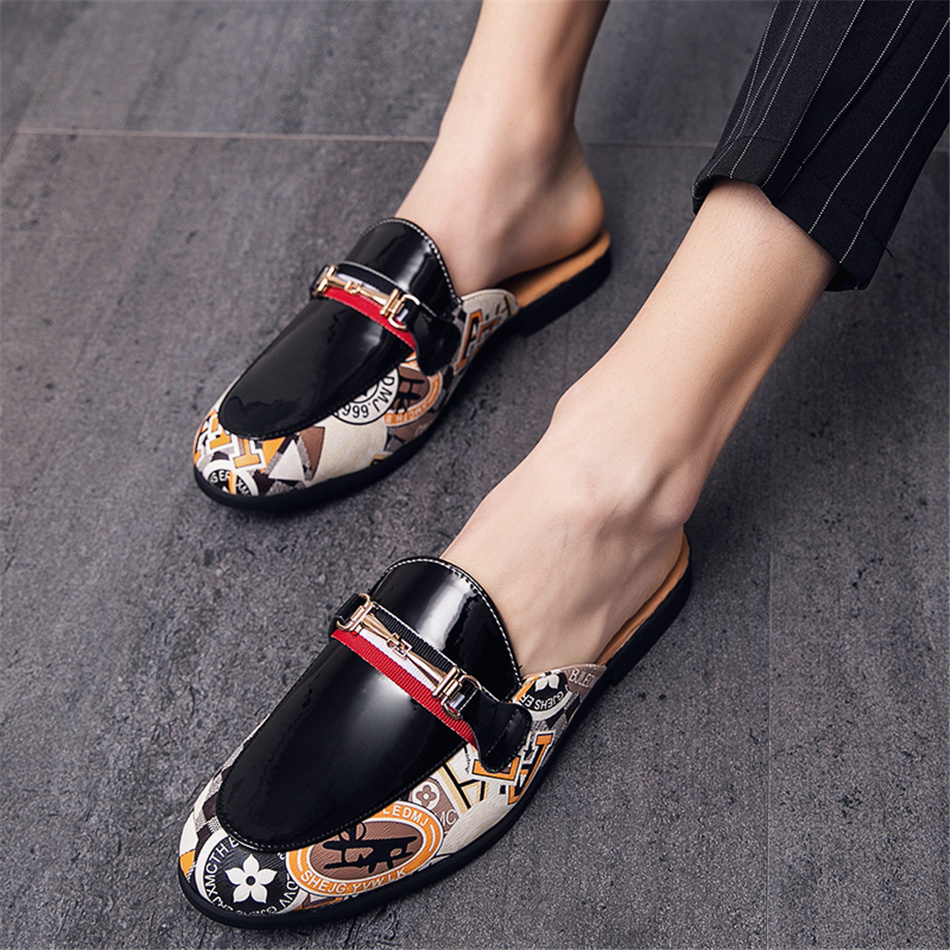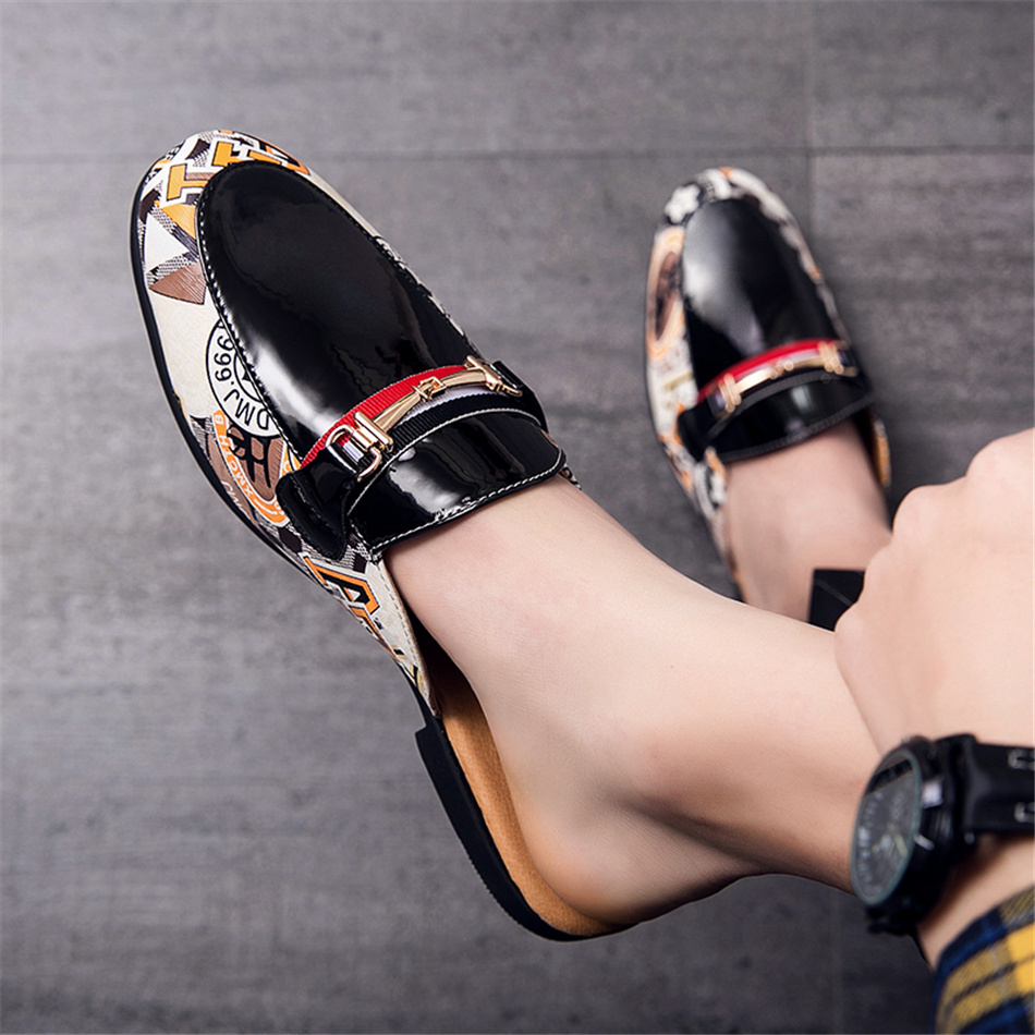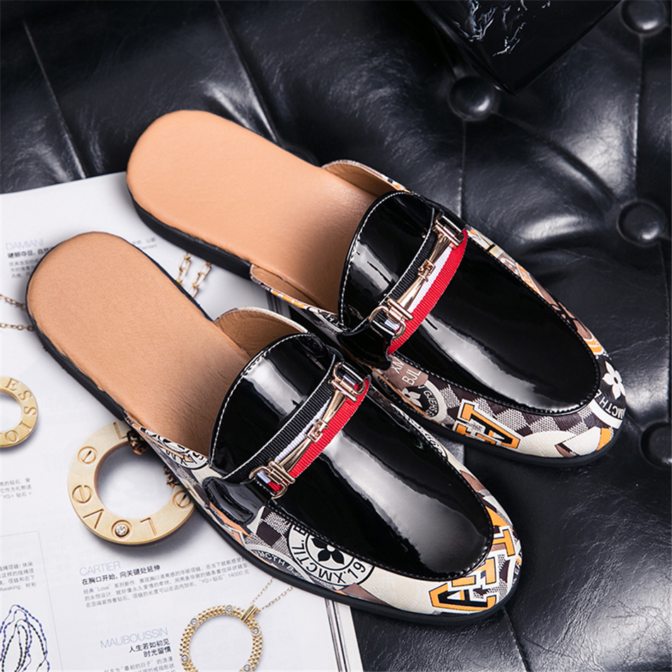 Niulatu Outdoor Mixed Colors Men Half Loafers Patent Leather Half Shoes Fashion Lightweight Slippers Breathable Man Casual Mules DJSE