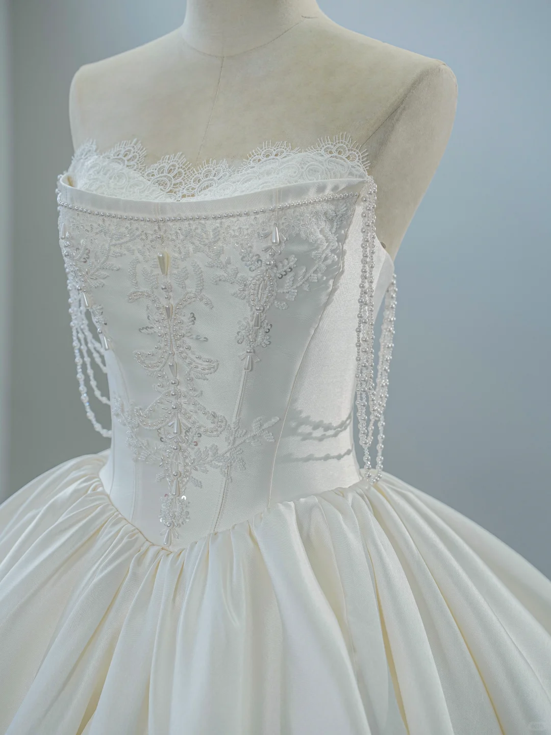 Niulatu Pearl Ball Gown Strapless Lace Satin Long 16th Birthday Dress Wedding Dress HZ0113