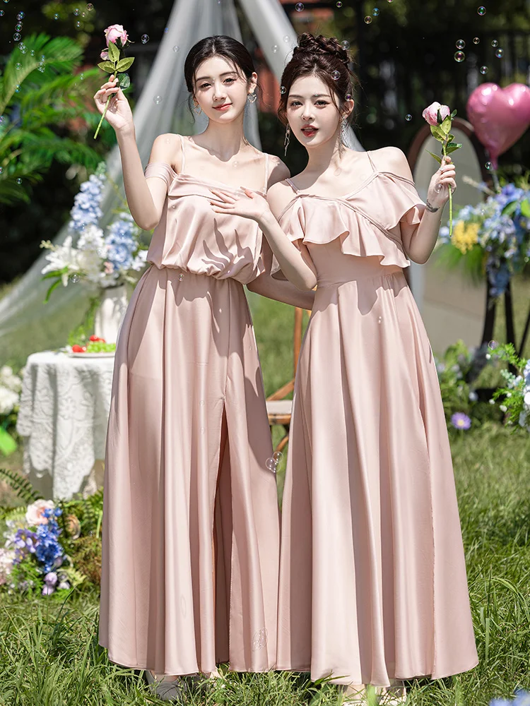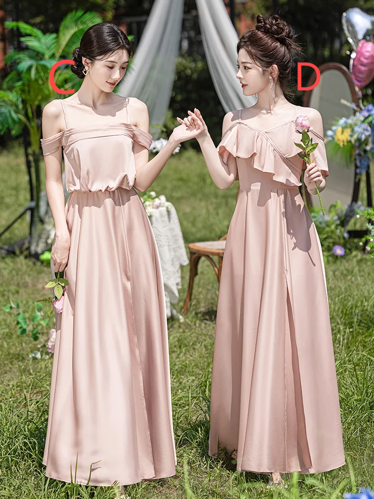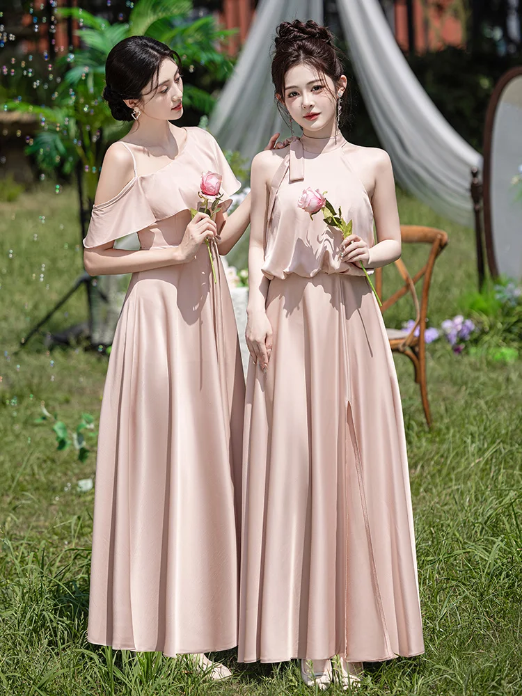 Niulatu Pink A Line Satin Long Bridesmaid Dress HZ1110