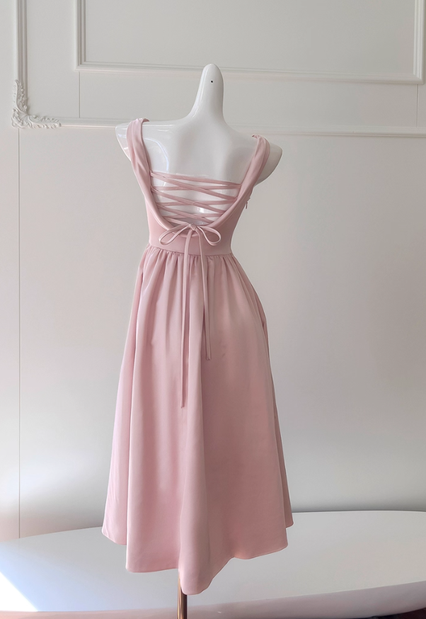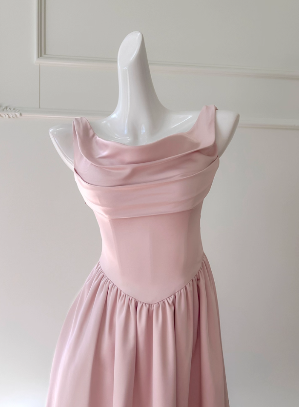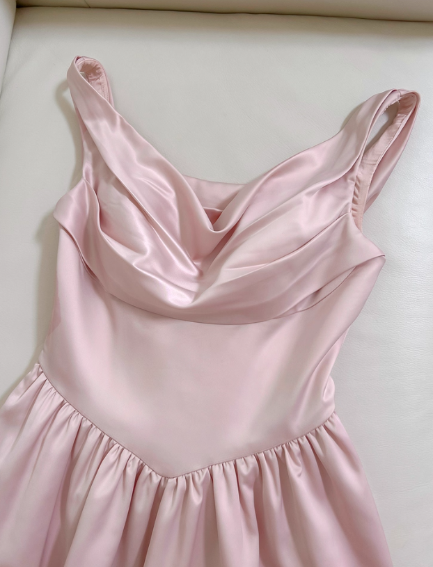 Niulatu Pink A Line Straps Pleated Satin Homecoming Dress HZ0113