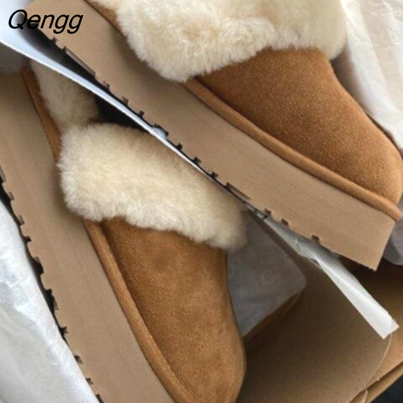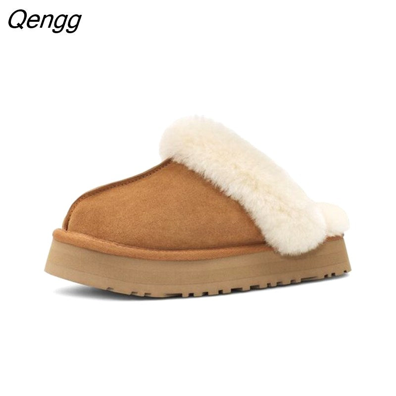 Niulatu Plush Cotton Slippers Women Flats Shoes 2025 New Fashion Platform Casual Home Suede Fur Warm Slingback Flip Flops DJSE