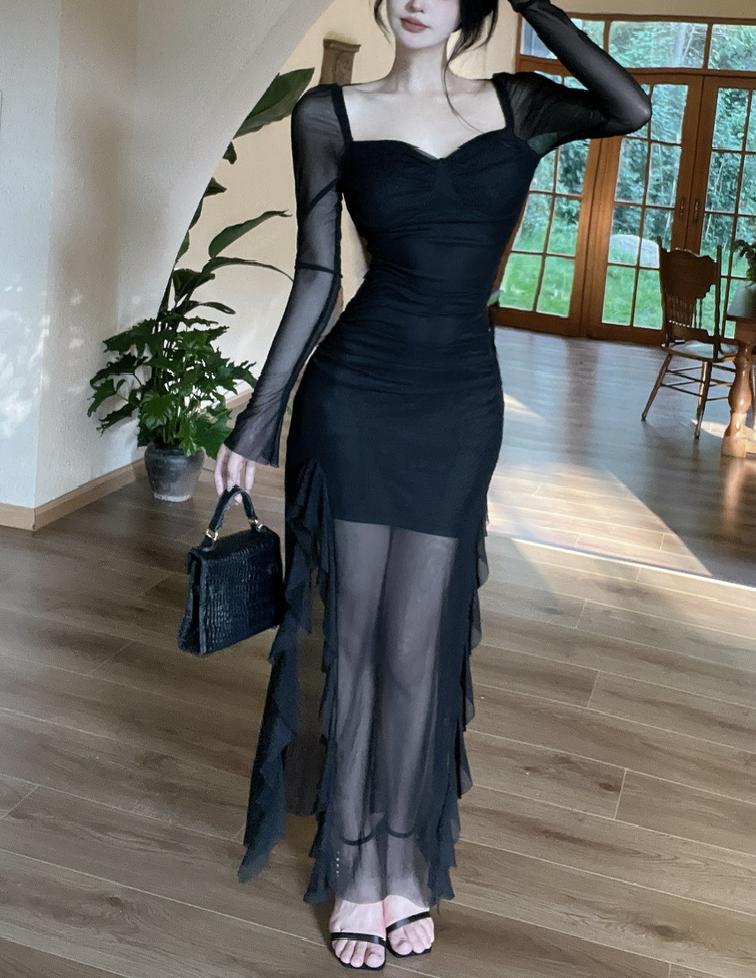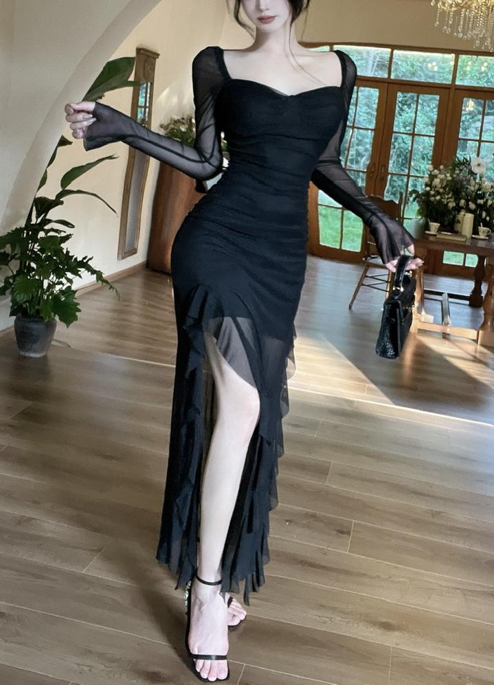 Niulatu Purple Square Neck Chiffon Long Sleeve Bodycon Party Dresses HZ1103