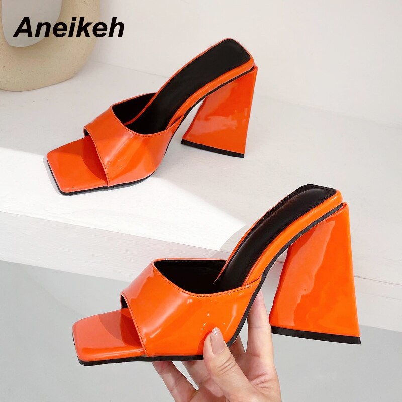 Niulatu Red Women Slides 2025 Shoes Shallow PU Fashion Casual Square Heel Concise Outside Peep Toe Solid New Size DJSE