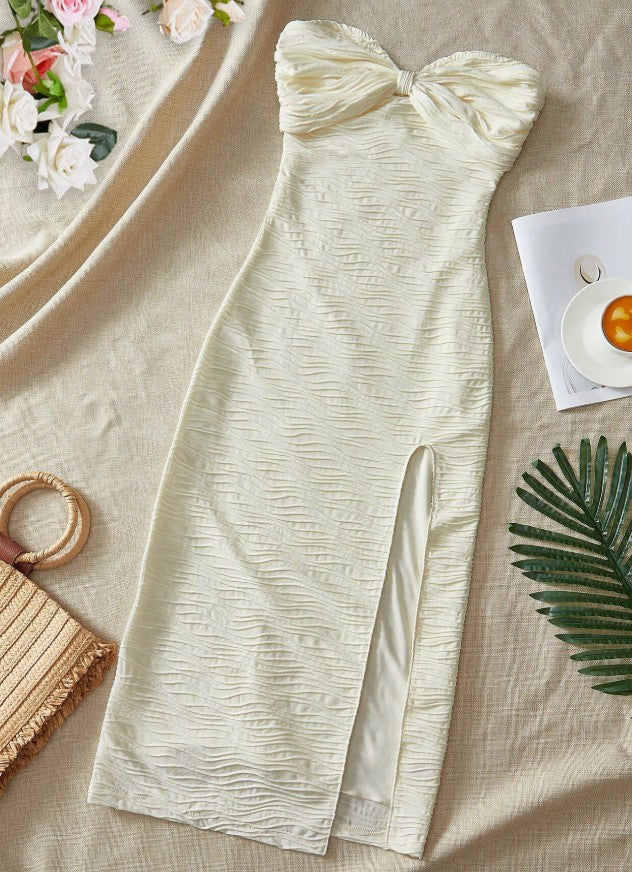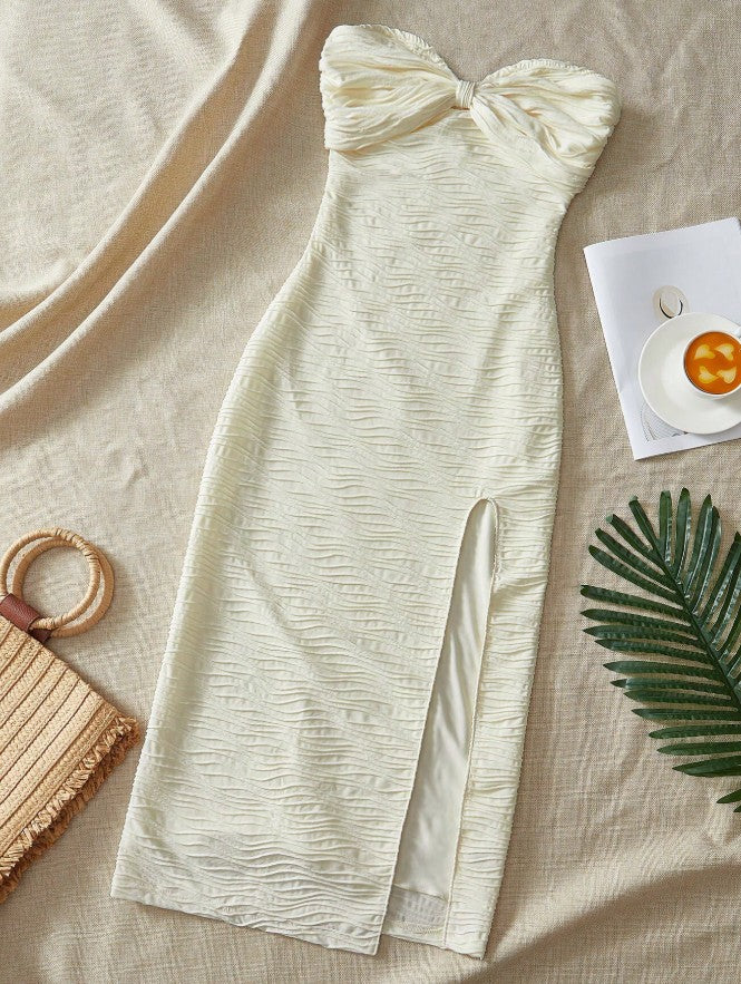 Niulatu Sexy Strapless Chiffon Bodycon Party Dress with Slits HZ1103