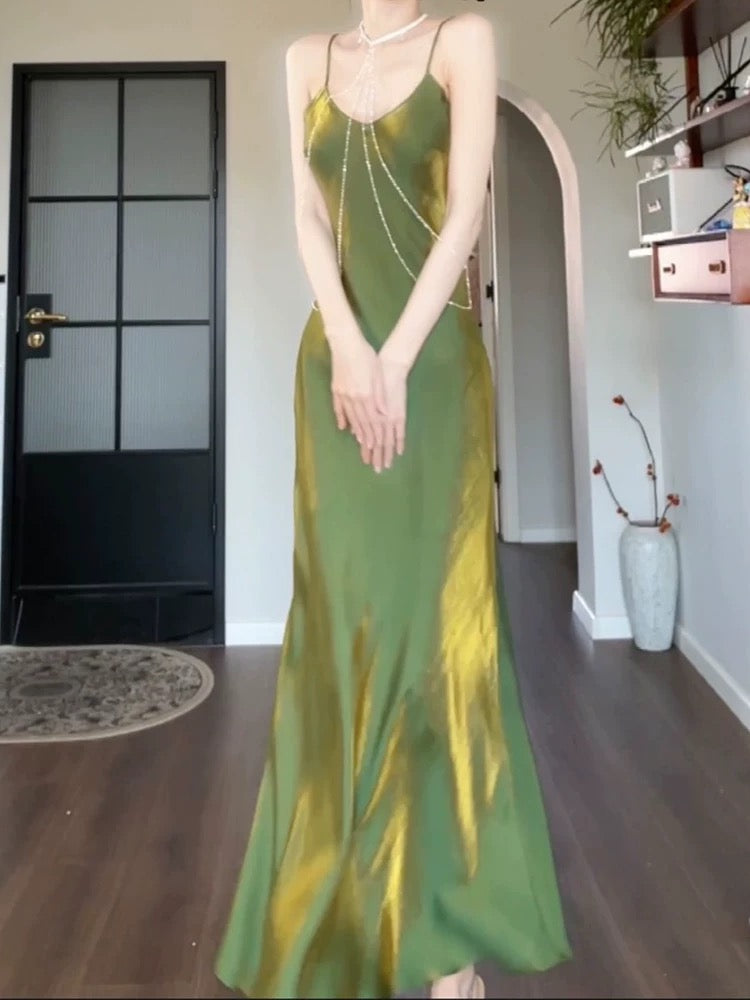 Niulatu Sheath Spaghetti Straps Green Long Prom Dresses HZ1110