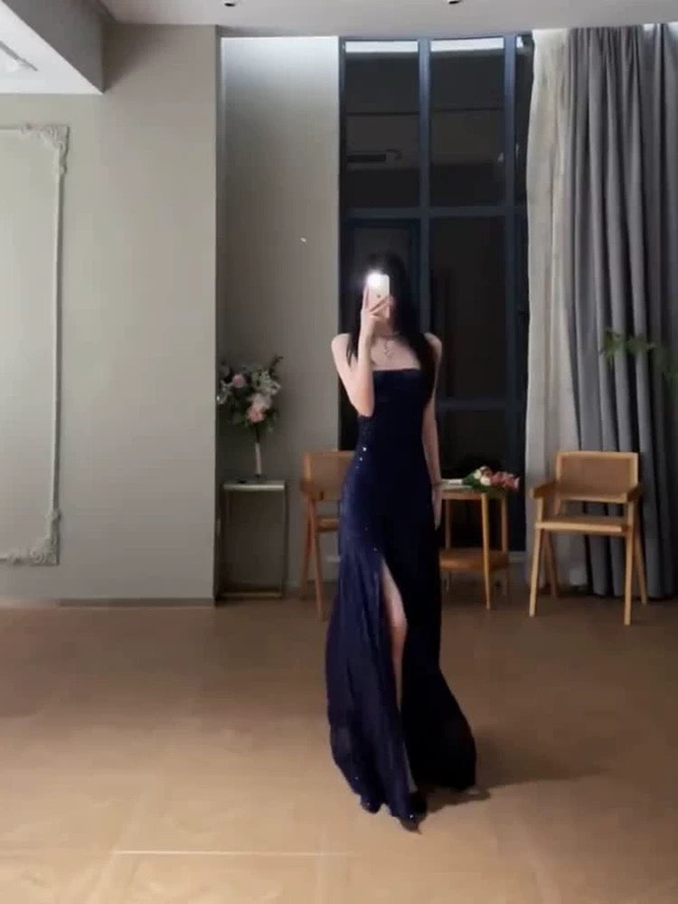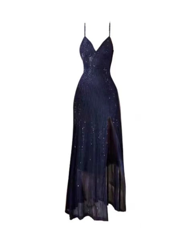 Niulatu Sheath Spaghetti Straps Navy Blue Sequin Evening Dress Prom Dresses Birthday Outfits HZ1110