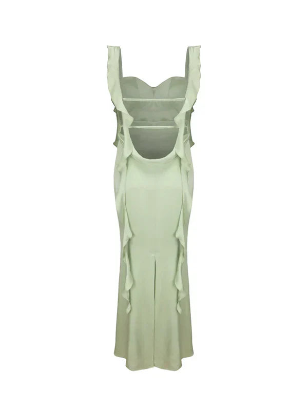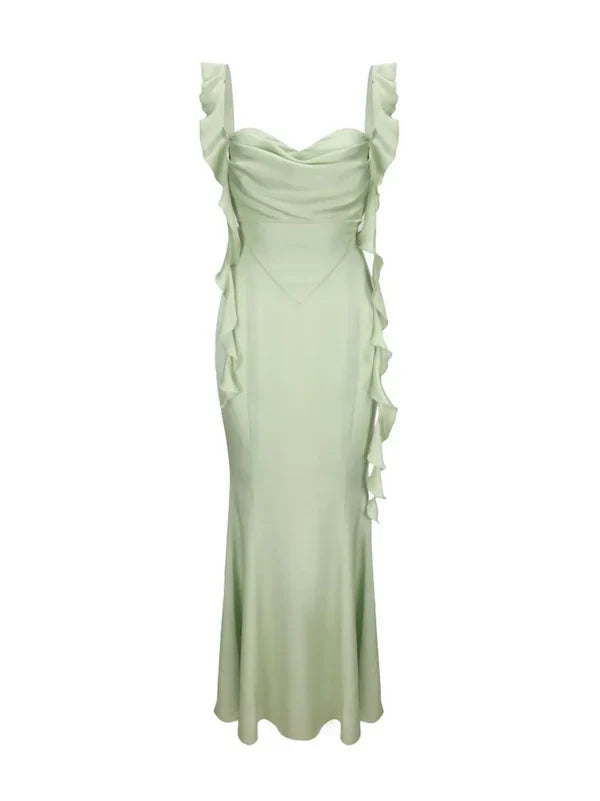 Niulatu Sheath Straps Sage Green Long Prom Dresses Evening Dress With Ruffles HZ1110