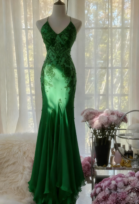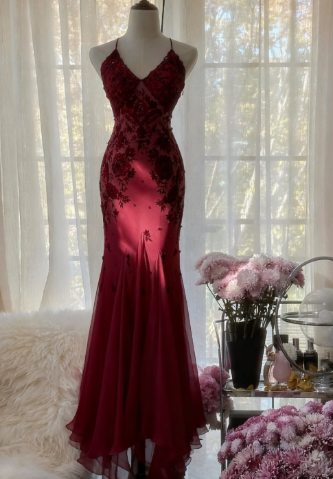 Niulatu Spaghetti Strap Chiffon Applique Long Prom Dresses Temperament Party Dresses HZ1026