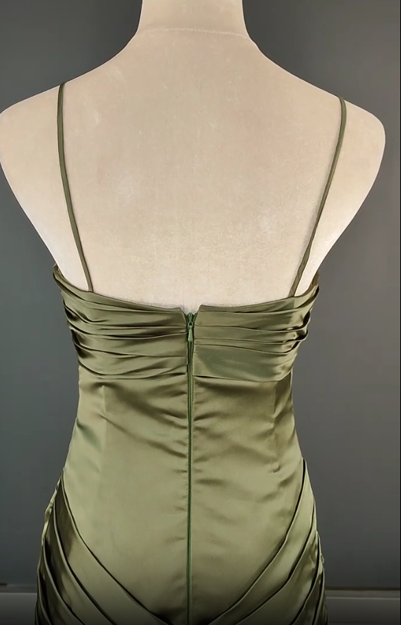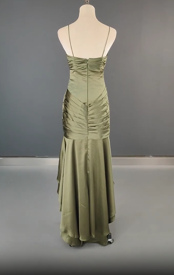 Niulatu Spaghetti Strap Mermaid Satin Dark Green Long Prom Dress Gorgeous Evening Dress HZ1026