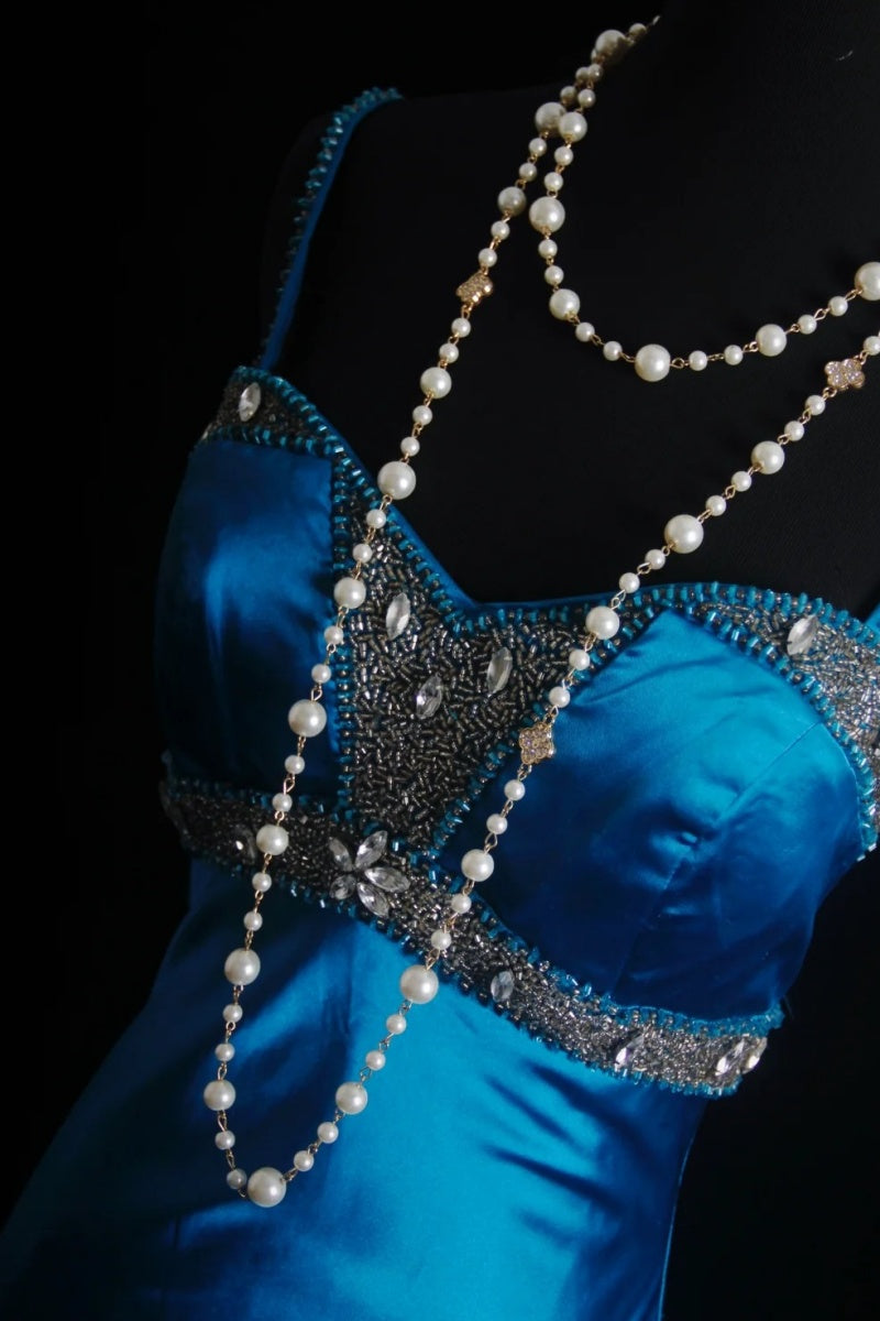 Niulatu Spaghetti Strap Sheath Long Prom Dresses Satin Blue Evening Dresses HZ1026