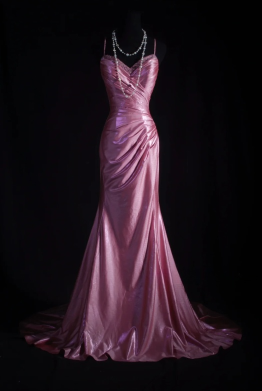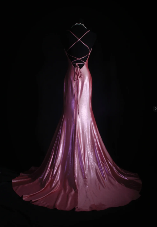 Niulatu Spaghetti Strap Sheath Pink Long Prom Dresses Silk Pleated Pink Evening Dresses HZ1026