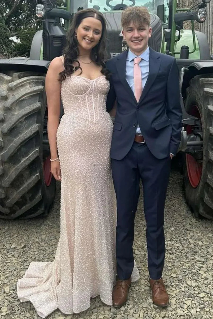Niulatu Spaghetti Straps Long Mermaid Sequins Party Prom Dress HZ1103