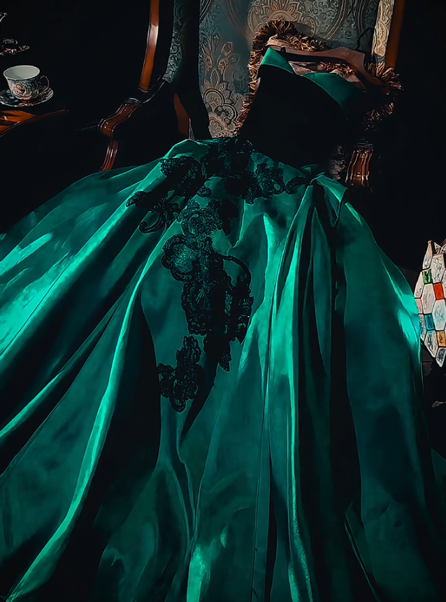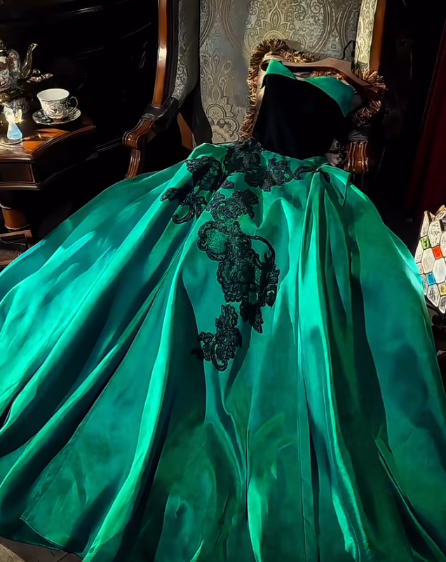 Niulatu Strapless A-Line Satin Lace Applique Long Prom Dress Vintage Green Formal Evening Dress HZ1031