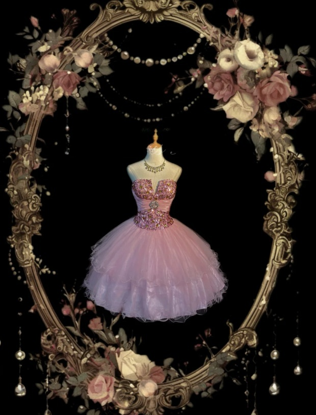 Niulatu Strapless Ball Gown Tulle Pink Short Prom Dresses Sequined Homecoming Dresses Pink Birthday Dresses HZ1026