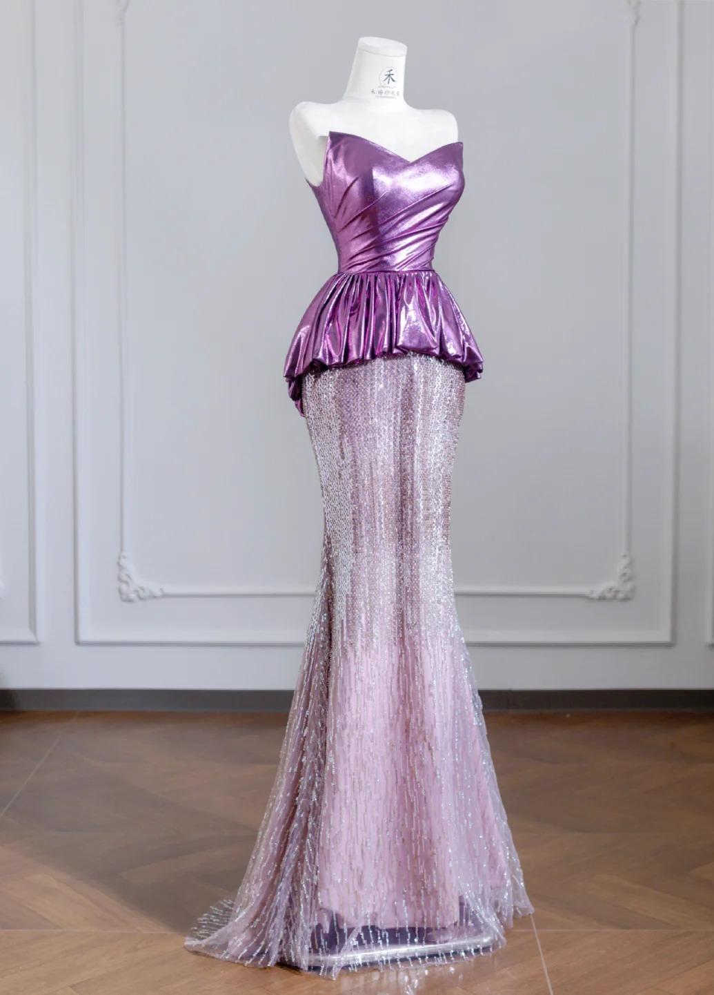 Niulatu Strapless Pink and Purple Mermaid Long Prom Dresses Elegant Evening Gowns HZ1103