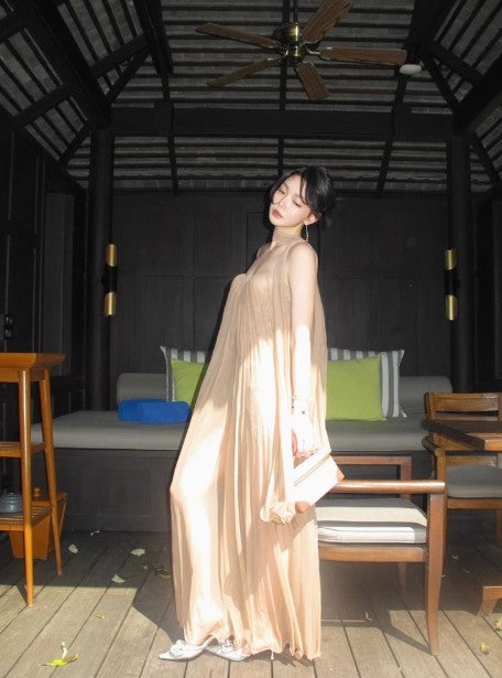 Niulatu style mesh ribbon tube top dress backless holiday maxi dress HZ1103