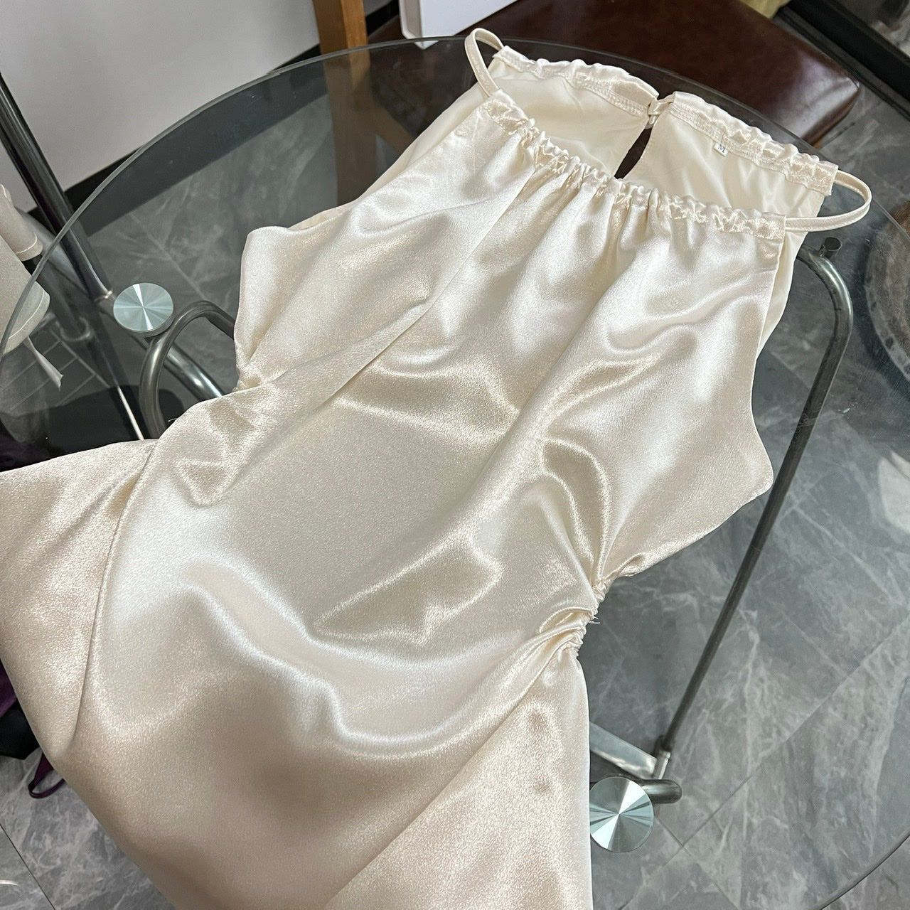 Niulatu style waist-baring halter neck pleated dress HZ1108