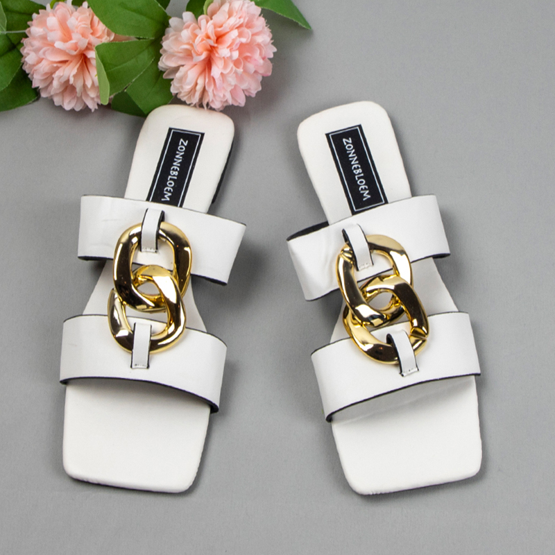 Niulatu Summer 2025 Fashion Luxury Design Flat Casual Slides Outside Beach Shoes Sqaure Toe Metal Button Women Slippers DJSE