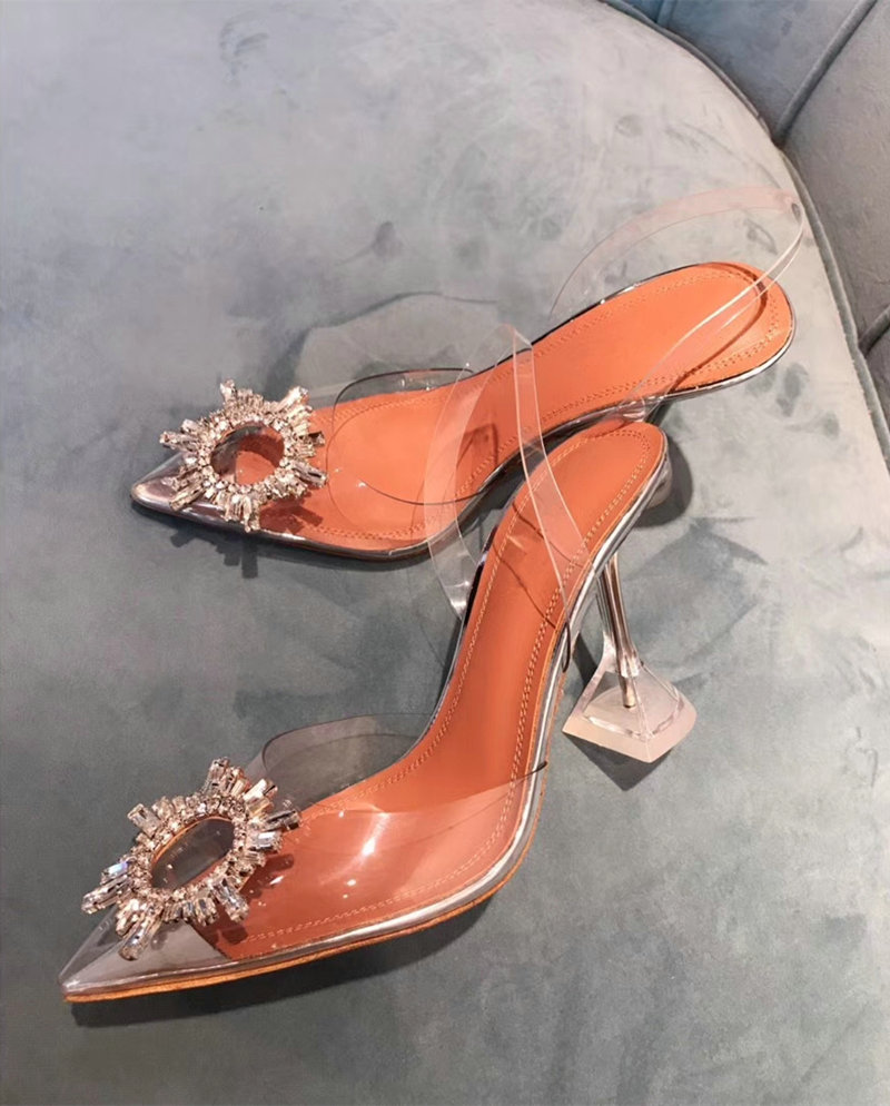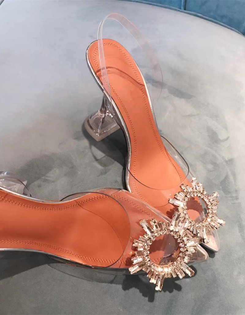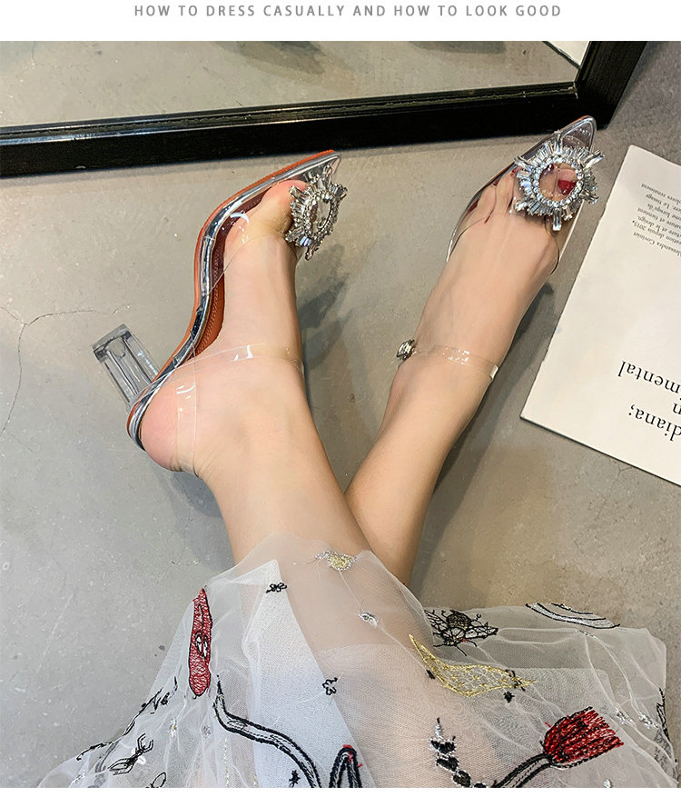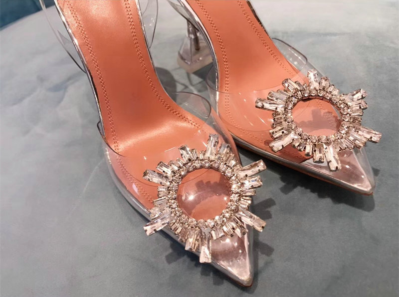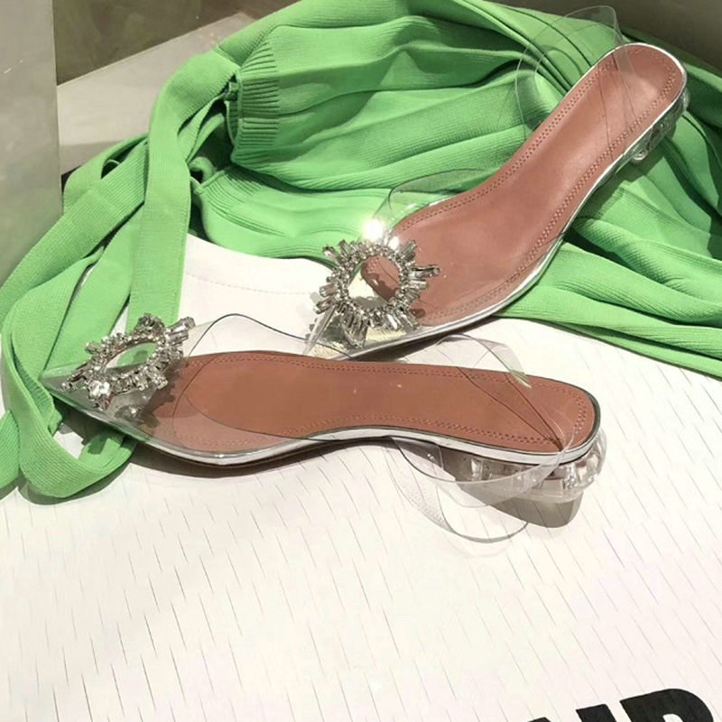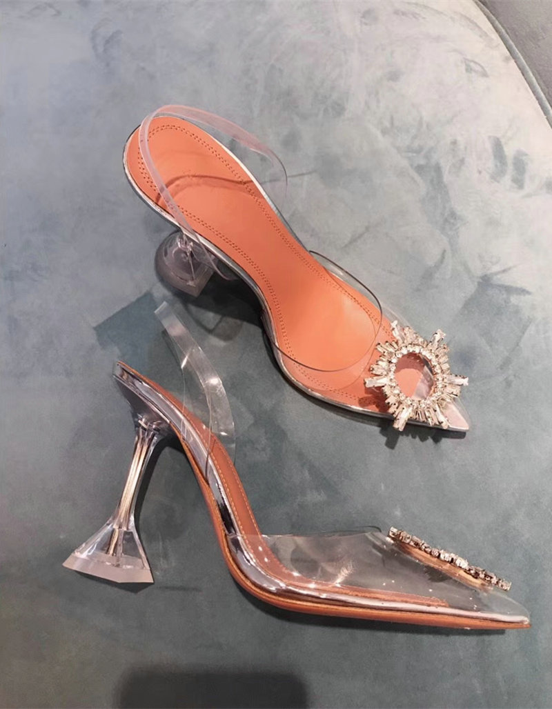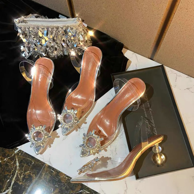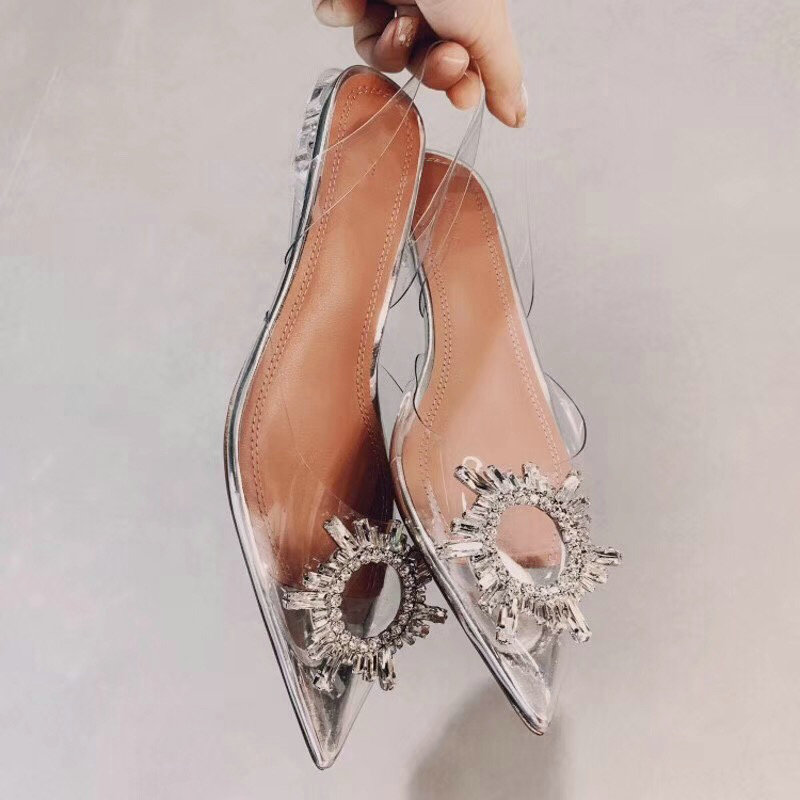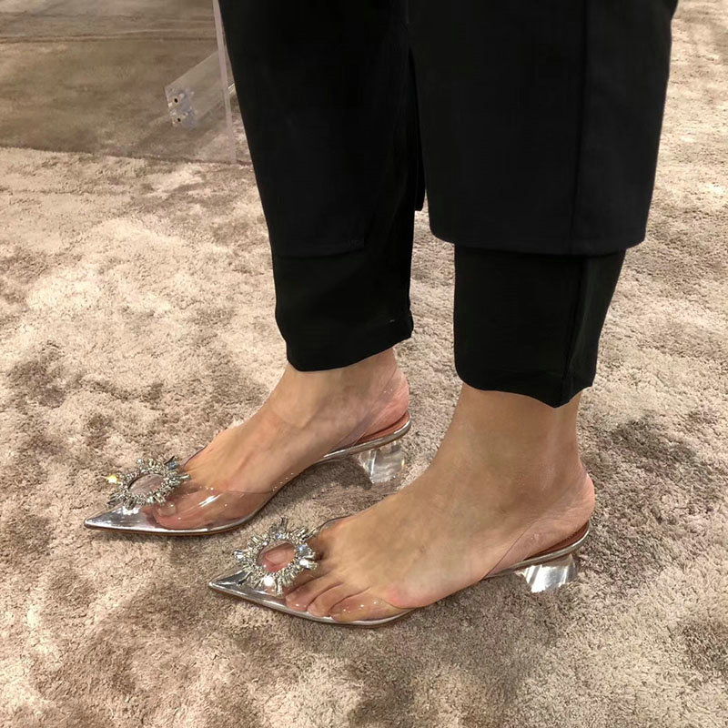 Niulatu Summer Women pumps Transparent Crystal Triangle heeled office lady Shoes High heels Party Wedding Shoes Woman Sandals DJSE