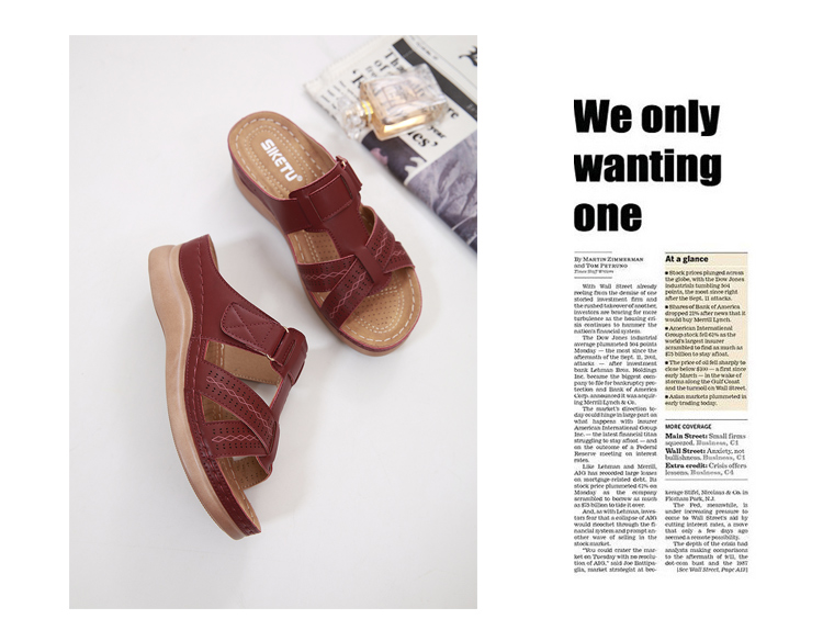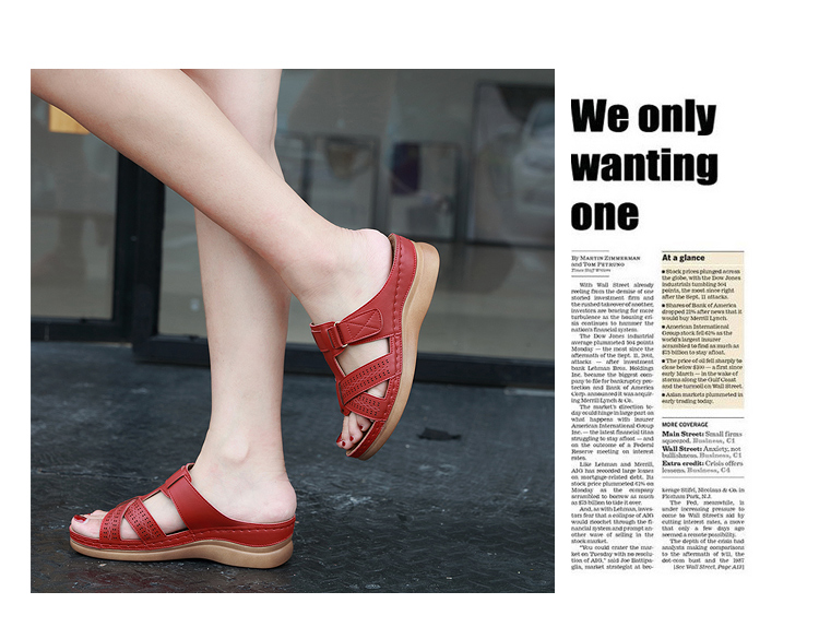 Niulatu Summer Women Wedge Sandals Premium Orthopedic Open Toe Sandals Vintage Anti-Slip Leather Casual Female Platform Retro Shoes DJSE