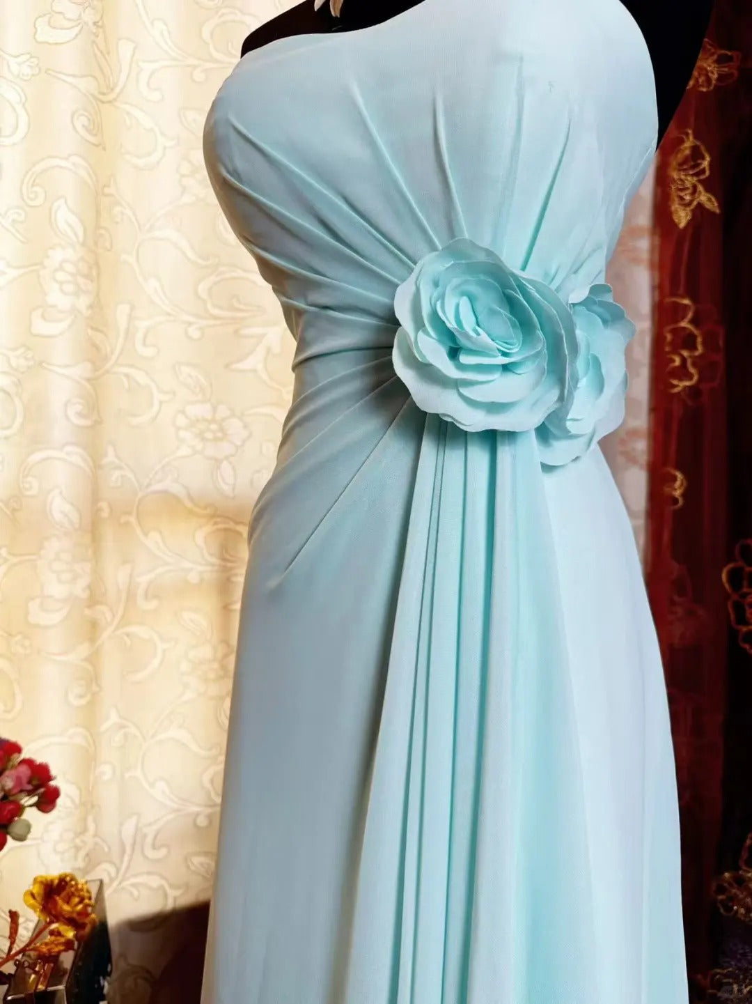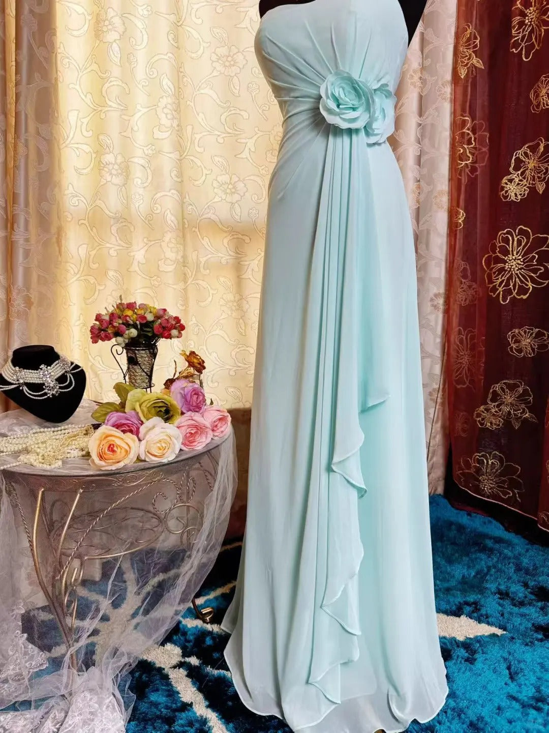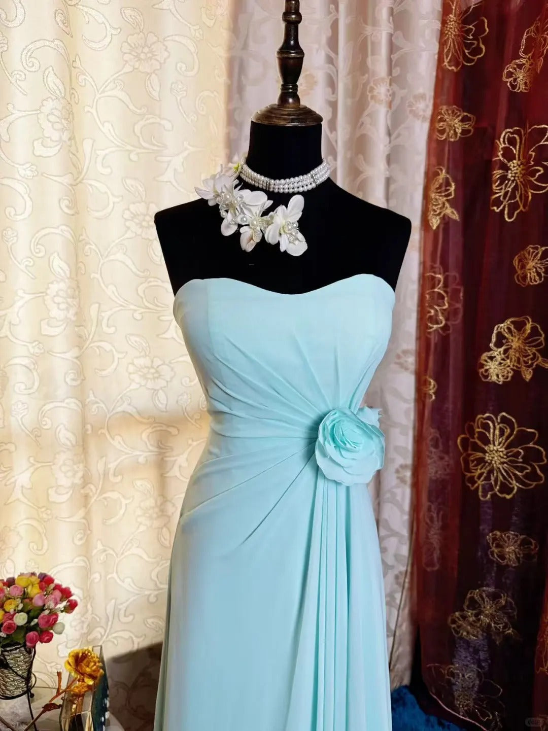 Niulatu Tiffany Blue Sheath Long Prom Dress Chiffon Vintage Evening Gown Sweetheart Formal Dress HZ1031