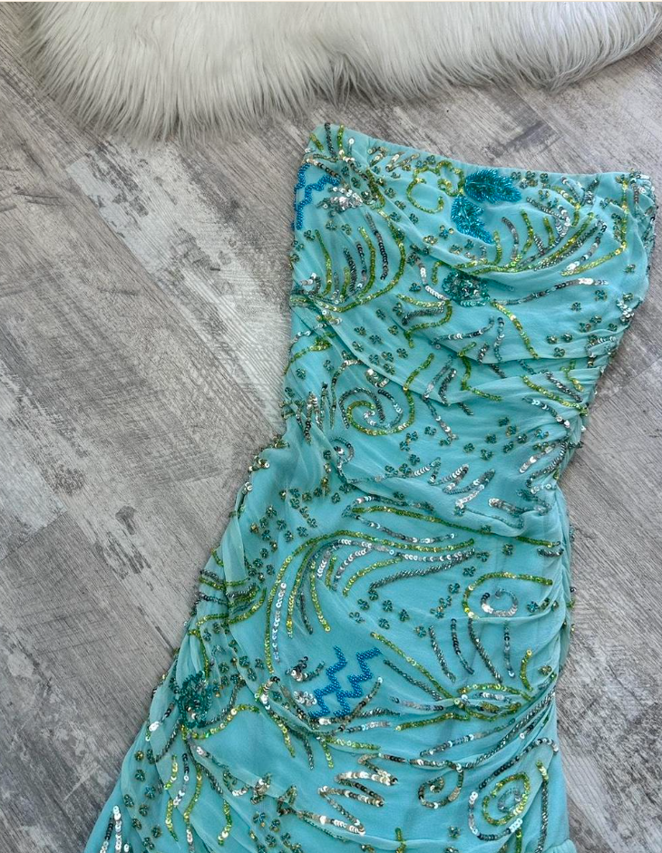 Niulatu Vintage Sheath Strapless Evening Gown Elegant Sequin Chiffon Formal Dress Long Prom Dress HZ1031