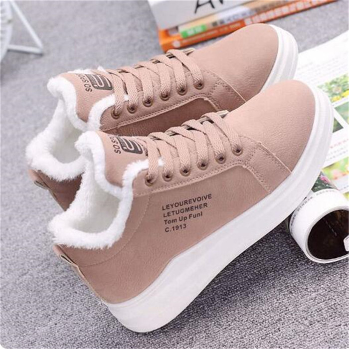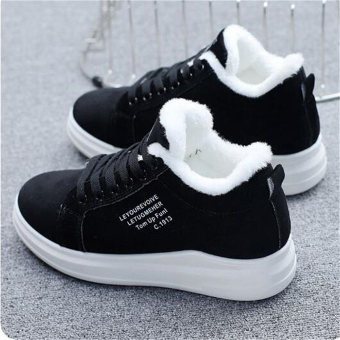 Niulatu Warm Women Vulcanized Shoes Fur Plush Casual Shoes Lace Up Fashion Platform Sneakers Women Snow Boots Zapatillas Mujer DJSE