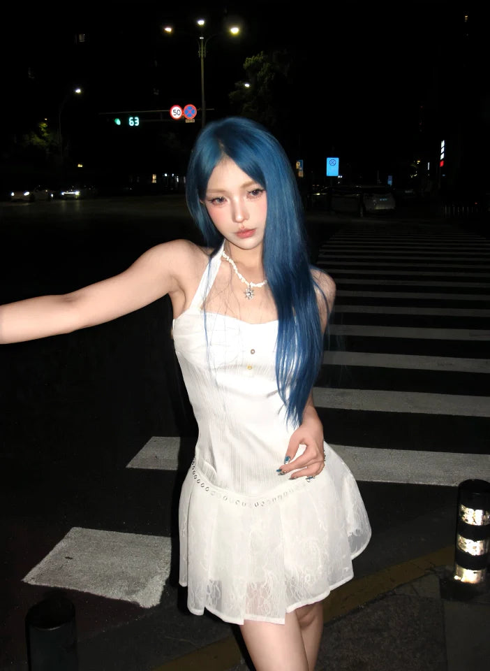 Niulatu White A-Line Halter Lace Short Party Outfit HZ1031