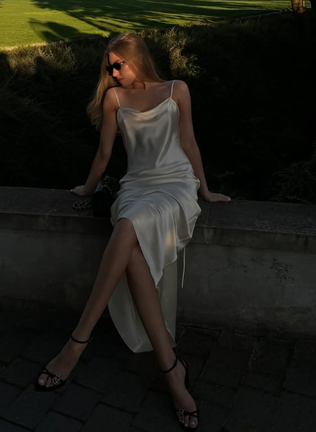 Niulatu White A Line Spaghetti Strap Satin Open Back Prom Dress Wedding Guest Dress HZ0113