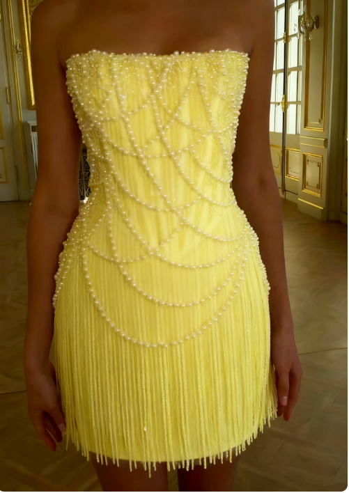 Niulatu White Strapless Bodycon Beaded Short Evening Dress Birthday Party Dress HZ1031