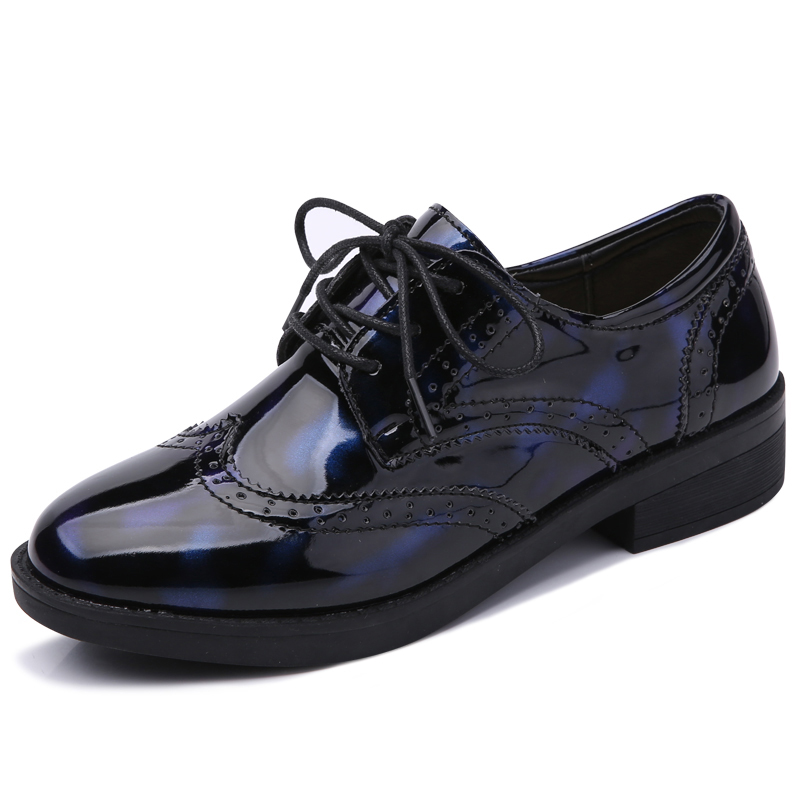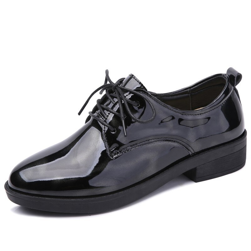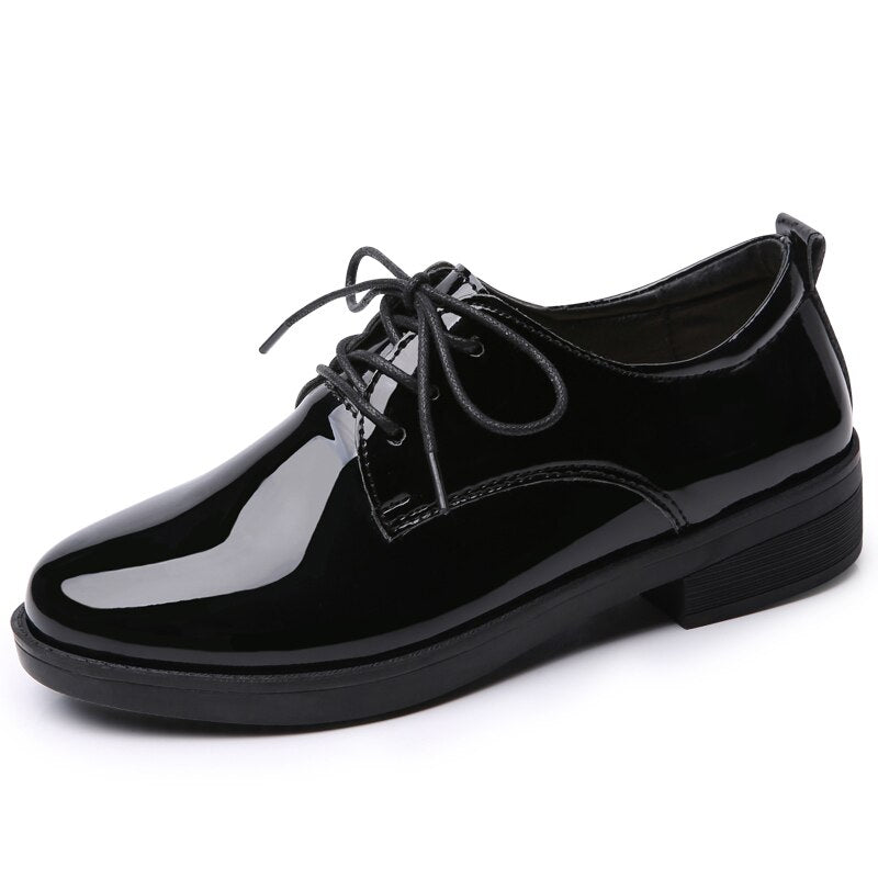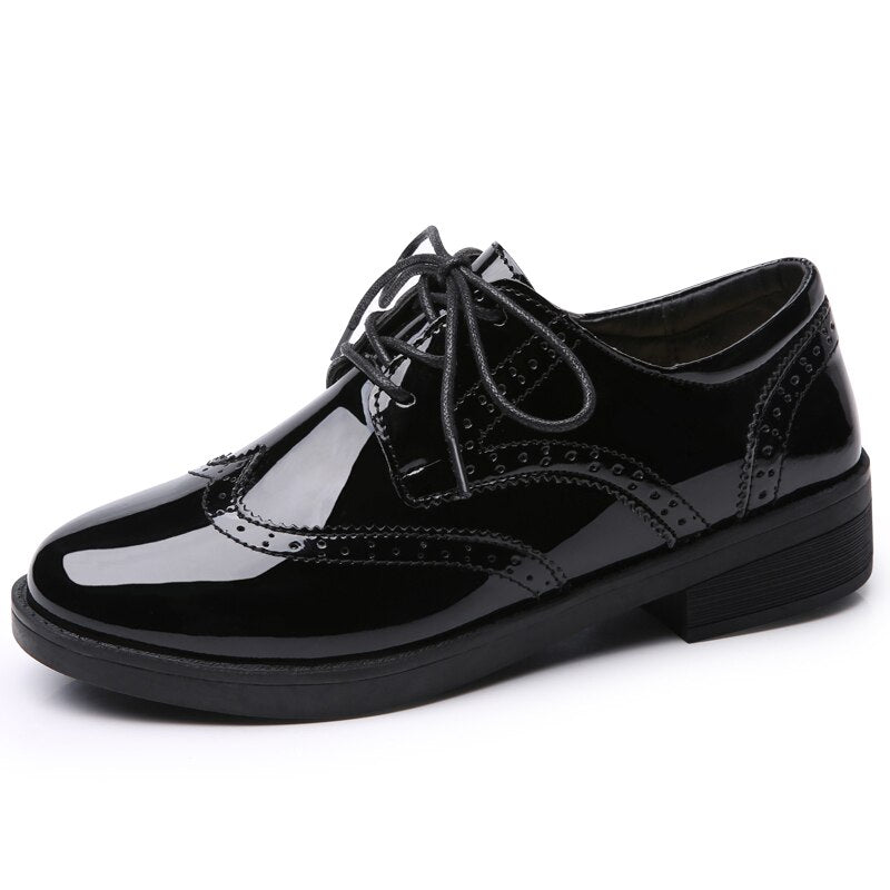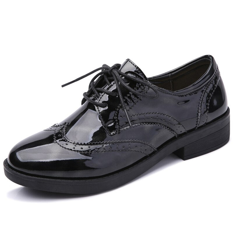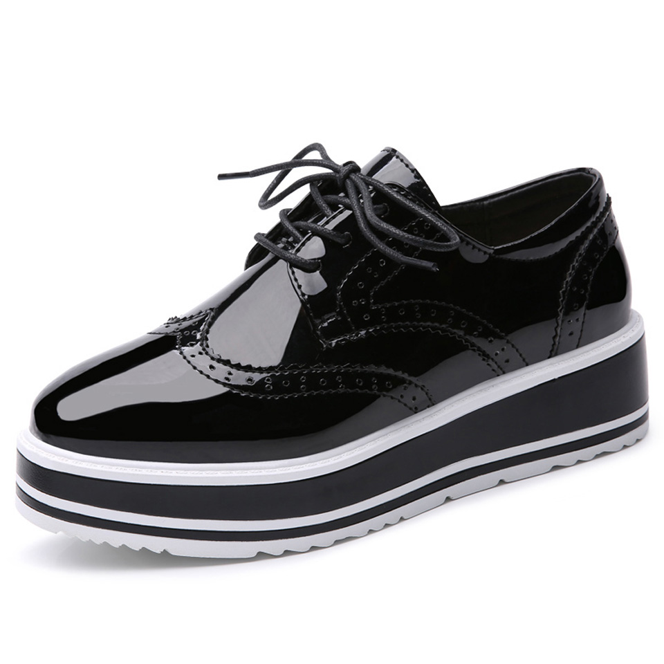 Niulatu Women Brogue Shoes Platform Autumn Patent Leather Black Casual Flats Lady Derby Classic Varnish Oxfords Female Footwear DJSE