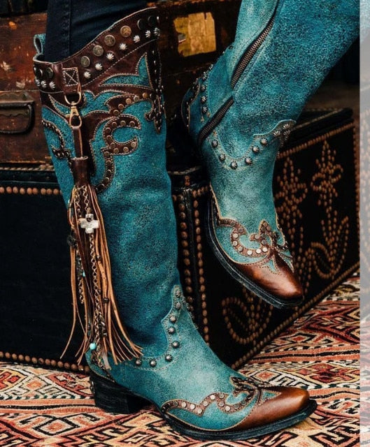 Niulatu women fashion boots spring Low Heel Women Shoes Cool British embroidered Design Soft Short Boots Party Knee High Boots pink DJSE