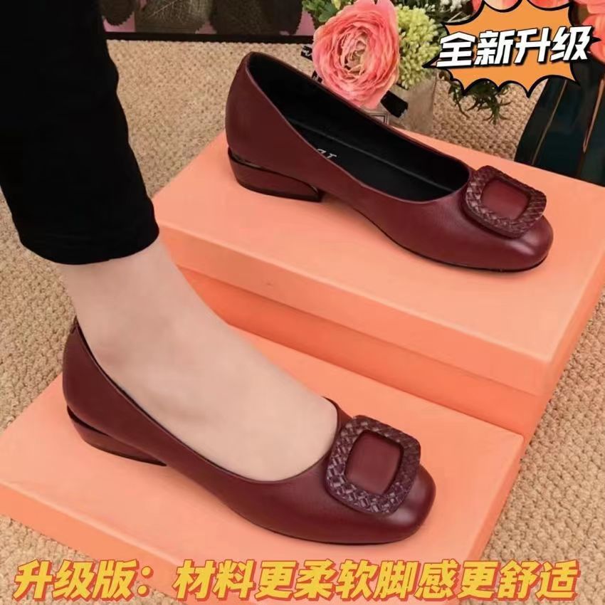 Niulatu Women Fashion Red Pu Leather Short Square Heel Pumps Lady Casual High Quality Sky Blue Comfort Office Shoes DJSE