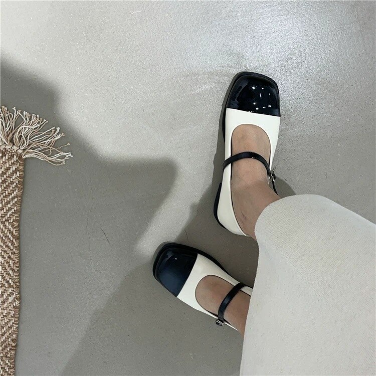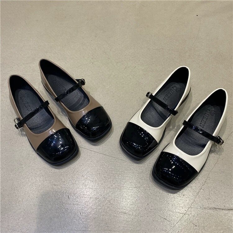 Niulatu Women Flat Shoes Square Toe Retro Mary Janes Loafers Female Belt Buckle Casual Autumn Fashion Lady Chaussure Femme DJSE