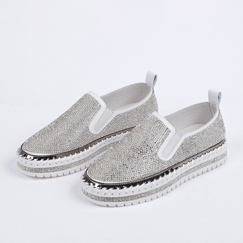 Niulatu Women Flats Crystal Ladies Glitter Bling Loafers Flat Platform Fashion Woman Casual Moccasins Female Shoes 2025 DJSE