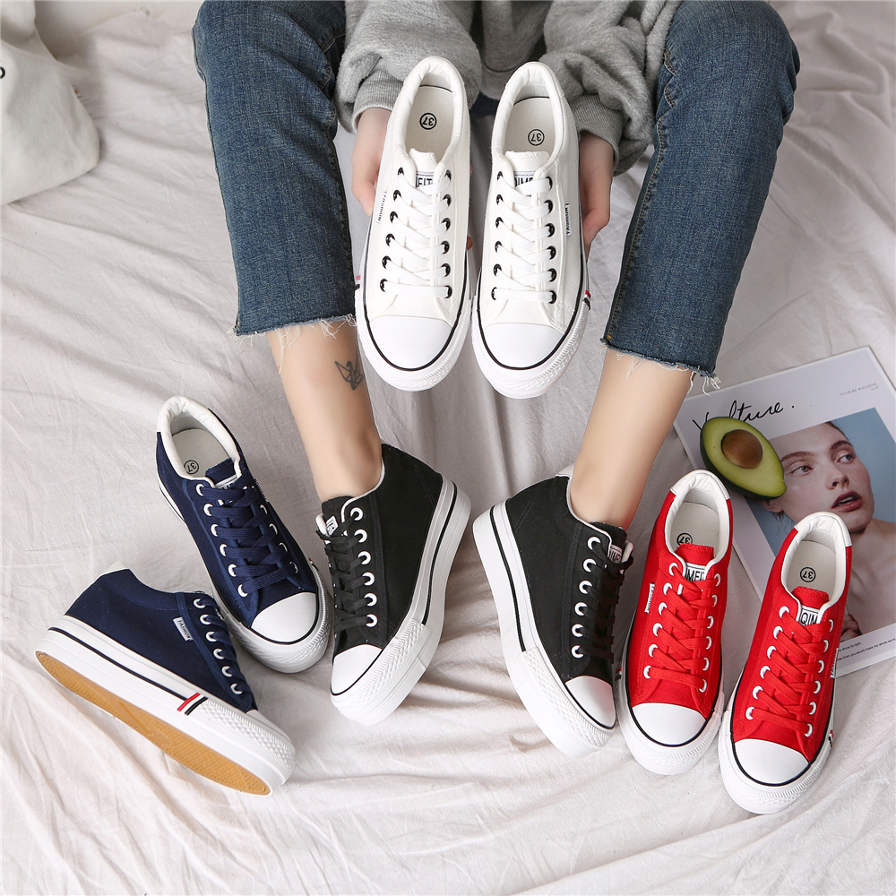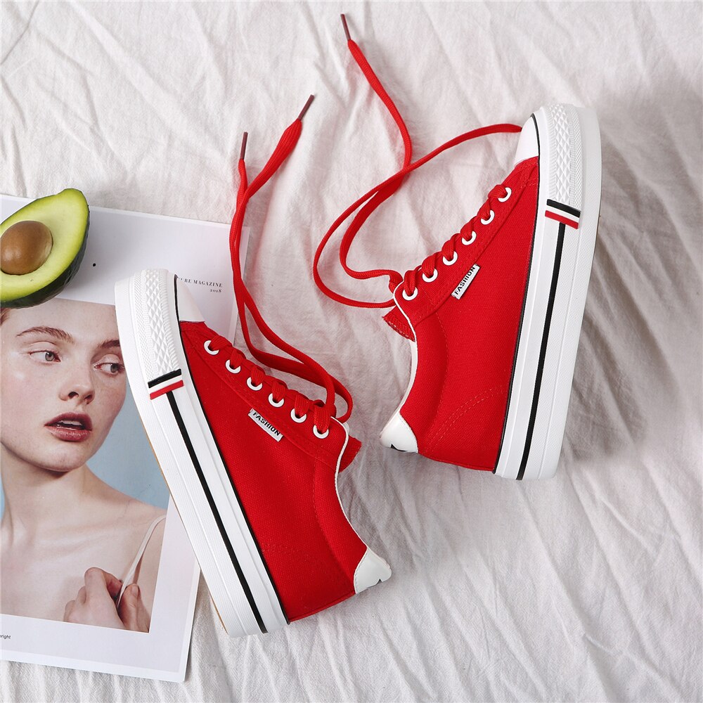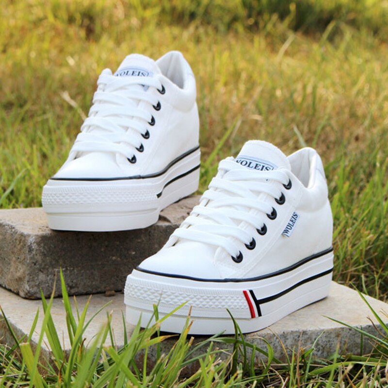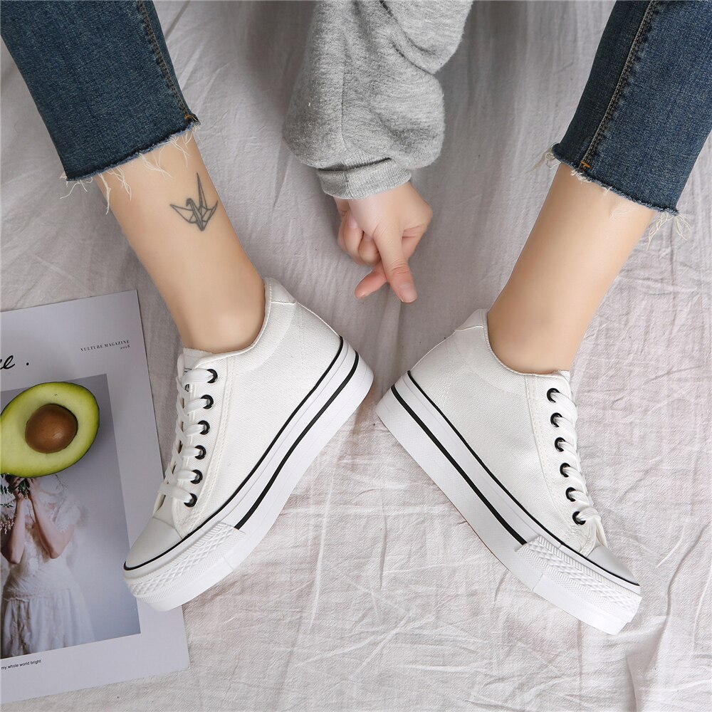 Niulatu Women Inner Height Increasing Canvas Wedge Shoes Trainers Female Sneakers Woman Casual Thick Bottom Sneaker Tennis DJSE