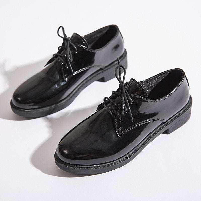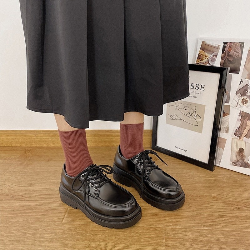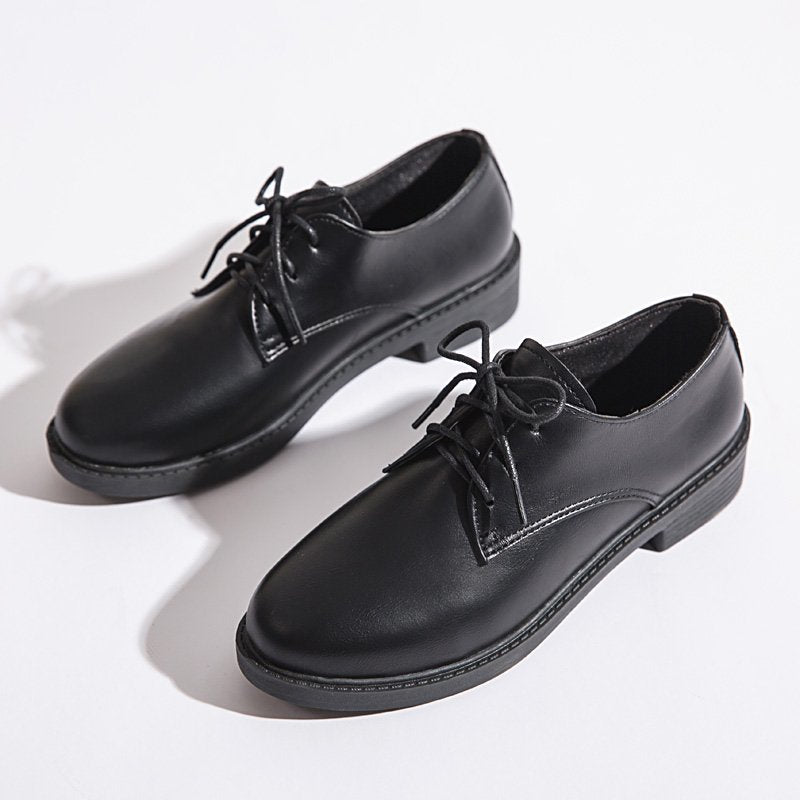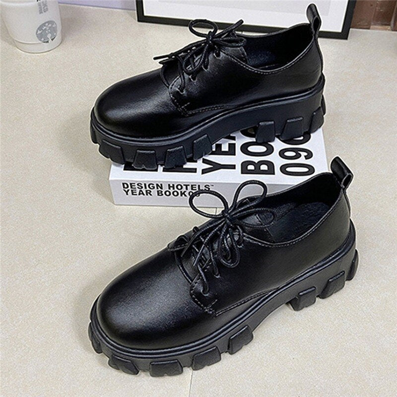 Niulatu Women Platform Flat Oxford Shoes Black Lace Up Leather Casual Round Toe Spring Autumn Shoes Heighten Waterproof Shoes Plus Siz DJSE